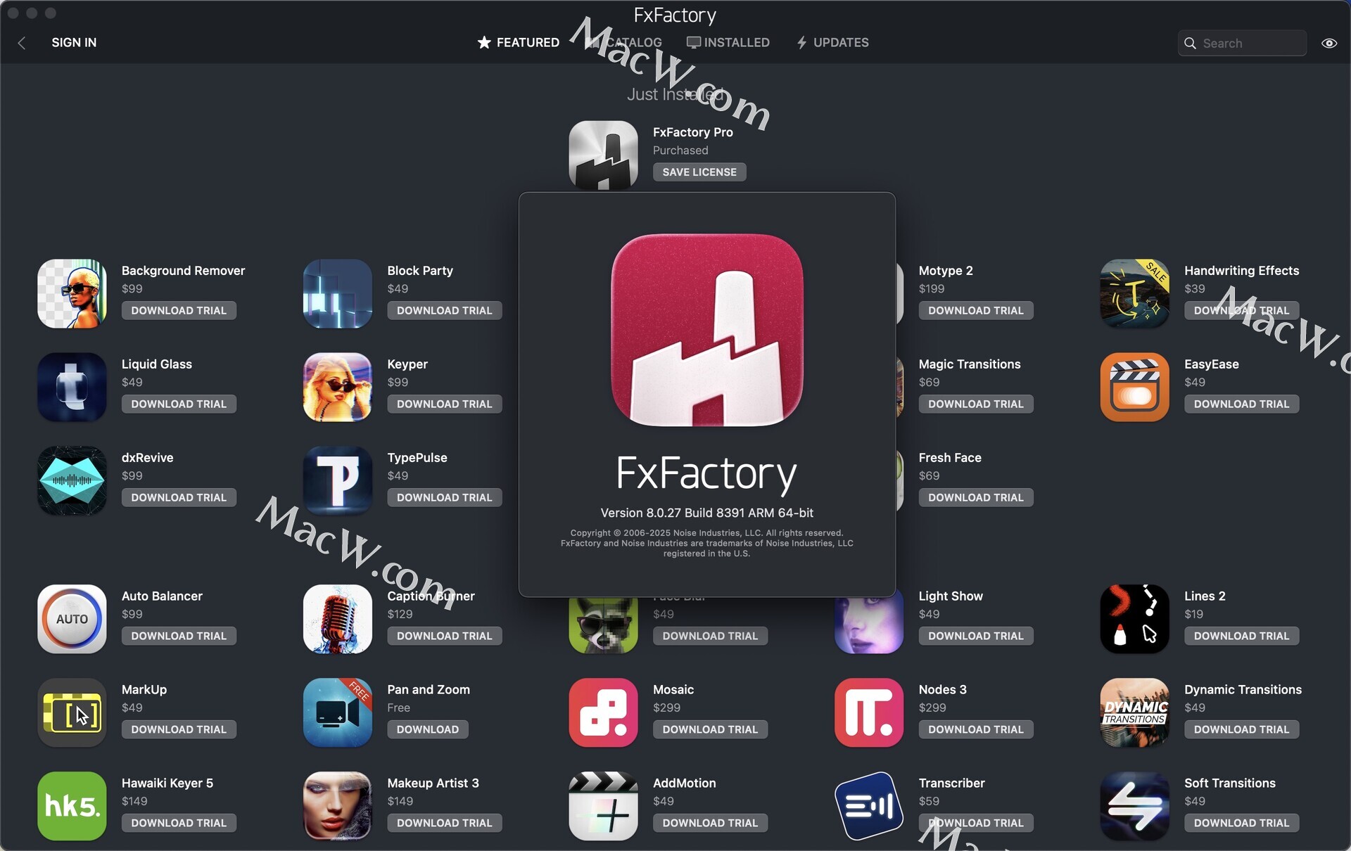 3、该FxFactory OS X应用程序,您还可以使用免费的产品,而无需购买,但也提供了购买和注册的商业产品的支持。