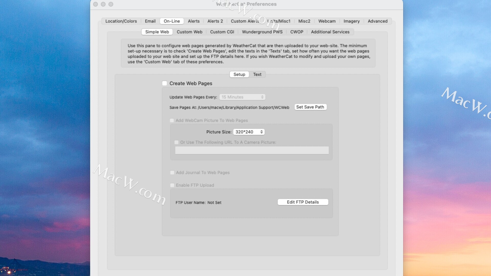 WeatherCat 还可以将您的天气数据发送到 Weather Underground (Wunderground)、公民天气观测计划 (CWOP)、Met-Office WOW 计划、PWSWeather、WeatherBug、OpenWeatherMap 和 WeatherCloud。此外,它还为您自己的基于 Web 的应用程序提供近乎实时的自定义 CGI 上传到 Web 服务器,以及将数据发送到 MySQL 数据库的能力,从而打开了整个应用程序世界。