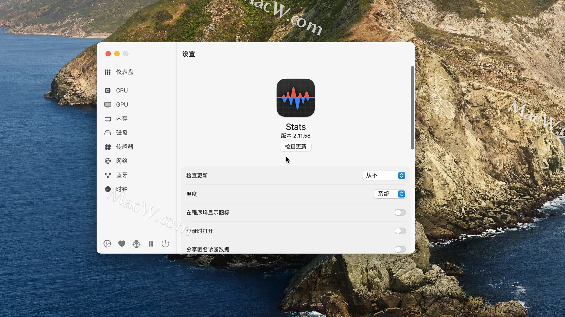 Stats是一款开源应用程序,旨在帮助您从菜单栏中监视温度,电压,功耗,电池电量以及常规资源使用情况。它是完全可配置的,不引人注目,并且非常易于使用。