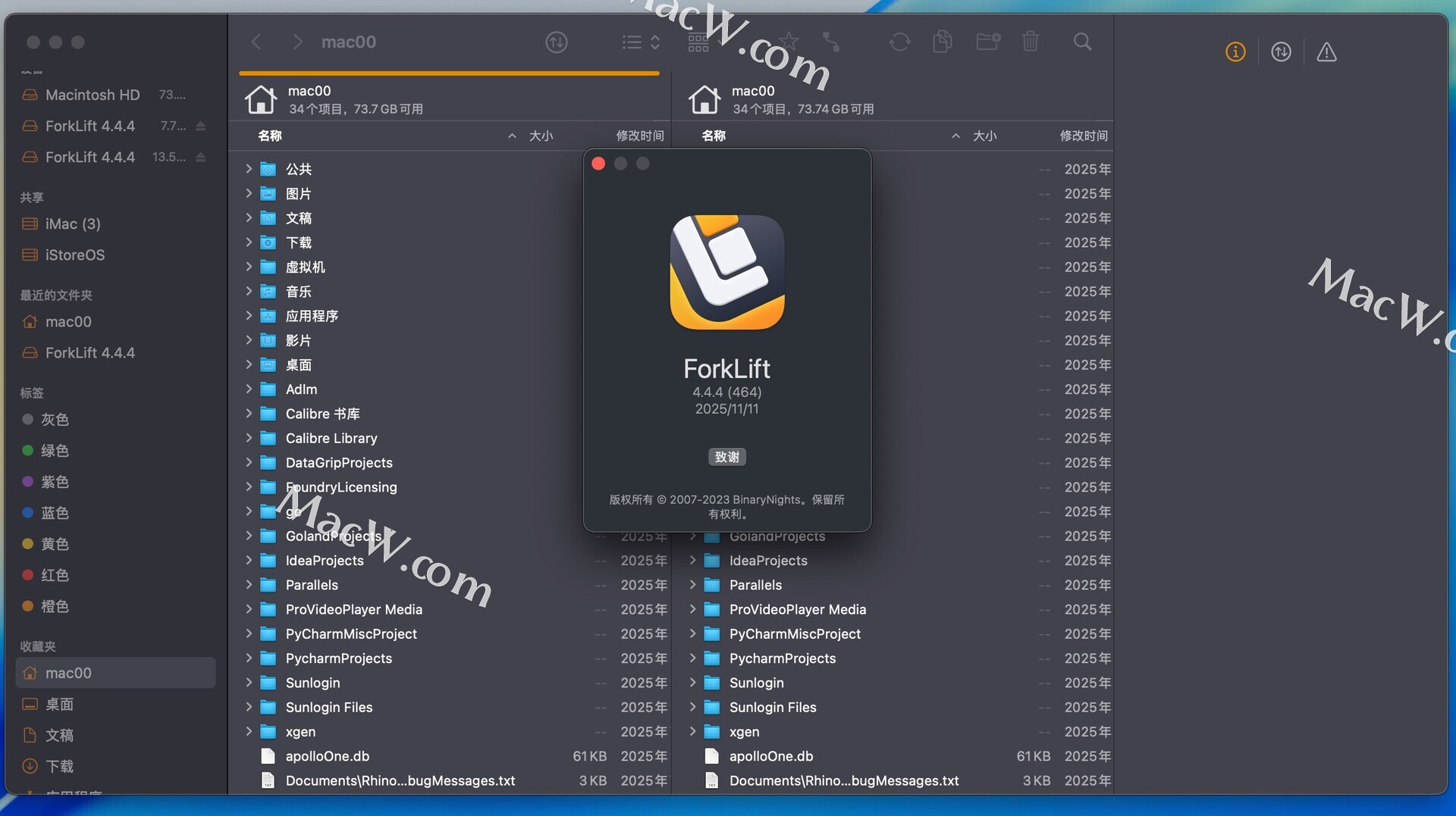 Forklift Mac破解版是Mac os系统上一款强大的文件管理程序,弥补了Finder文件管理比较单一的功能,强大到能远程连接Ftp、SFTP、Amazon S3、WebDAV、SMB、NIS、AFP等网络共享服务协议。测试环境:MacOS 15.5