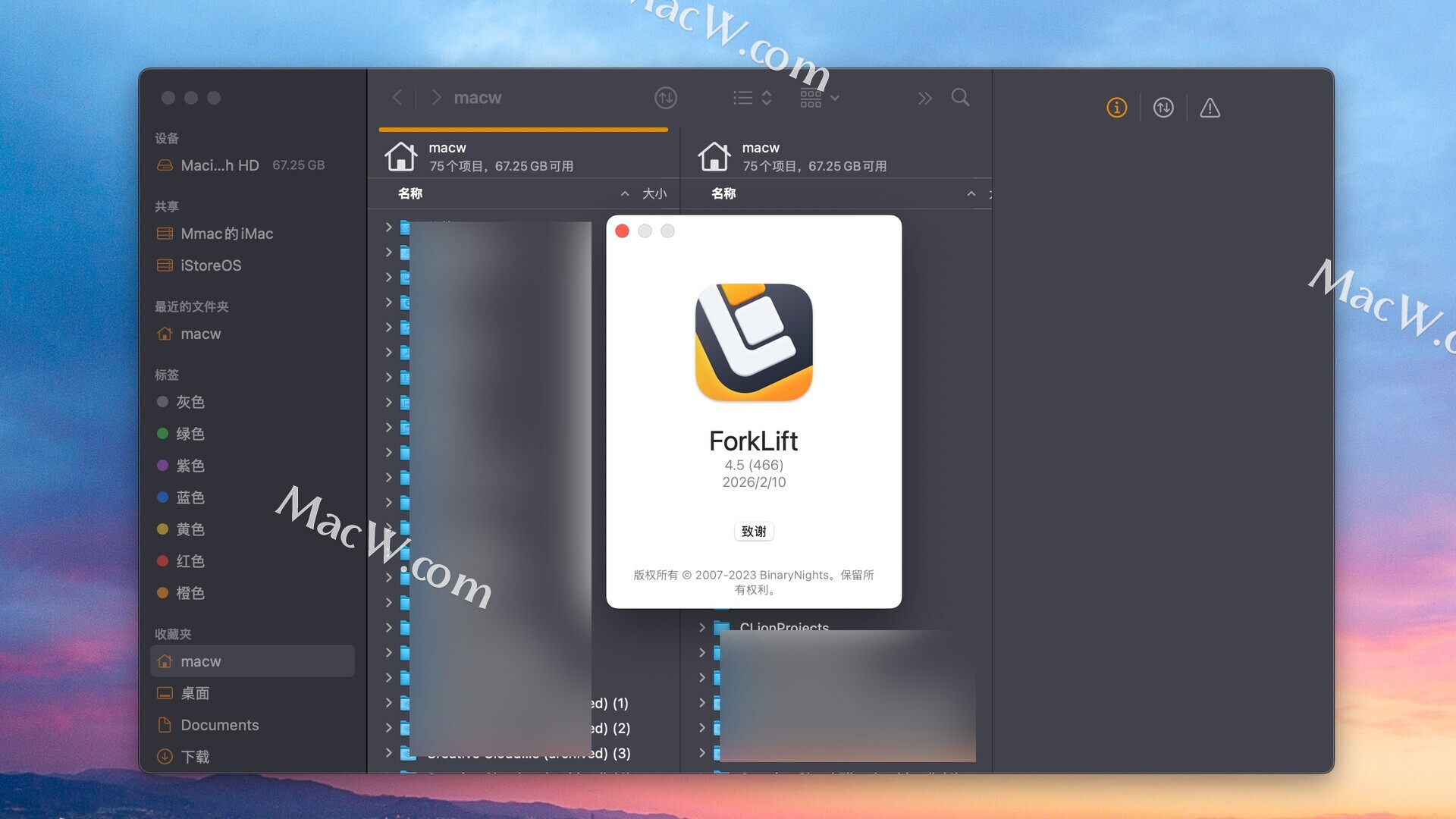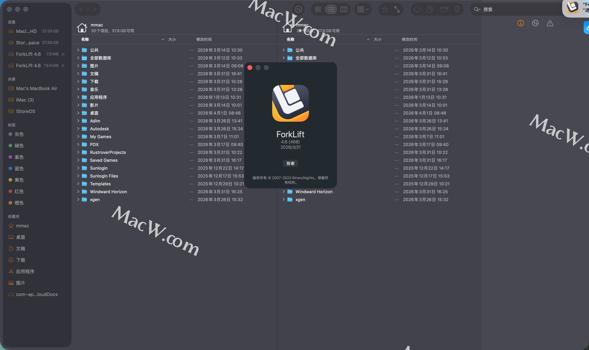 Forklift Mac破解版是Mac os系统上一款强大的文件管理程序,弥补了Finder文件管理比较单一的功能,强大到能远程连接Ftp、SFTP、Amazon S3、WebDAV、SMB、NIS、AFP等网络共享服务协议。测试环境:MacOS 26.2