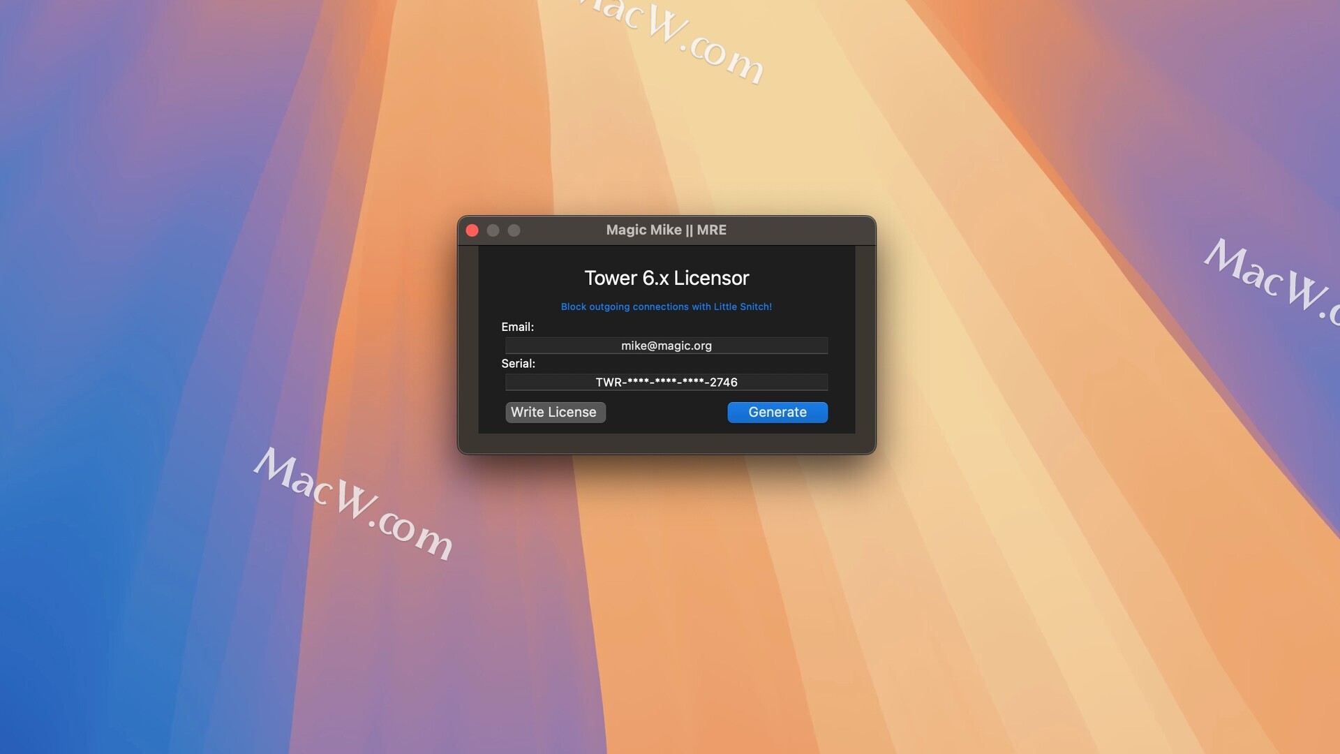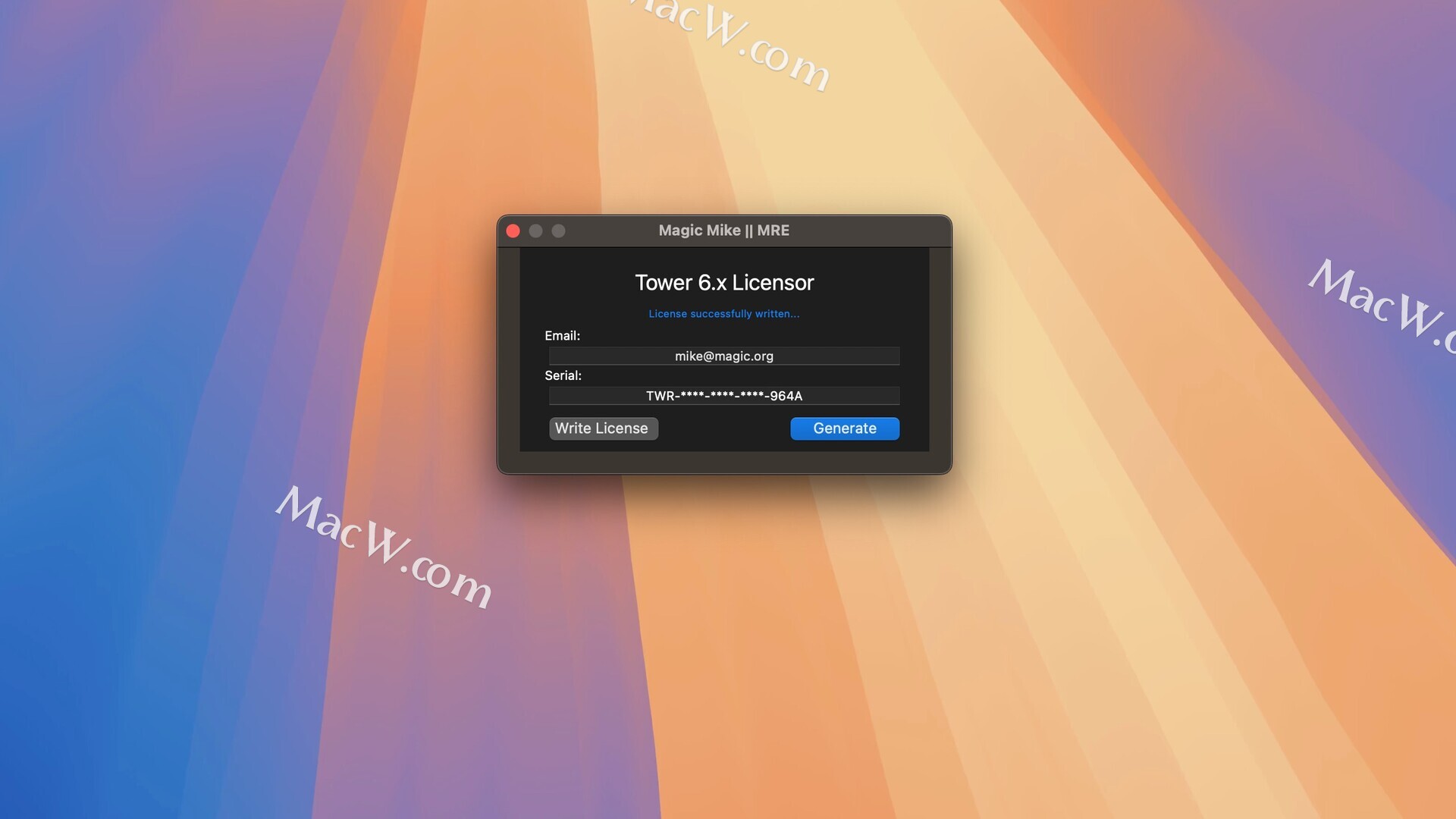 在Email界面随意输入任意邮箱名字,点击generate,然后点击write license把许可证写入软件!注意!需要关闭软件下才可以!