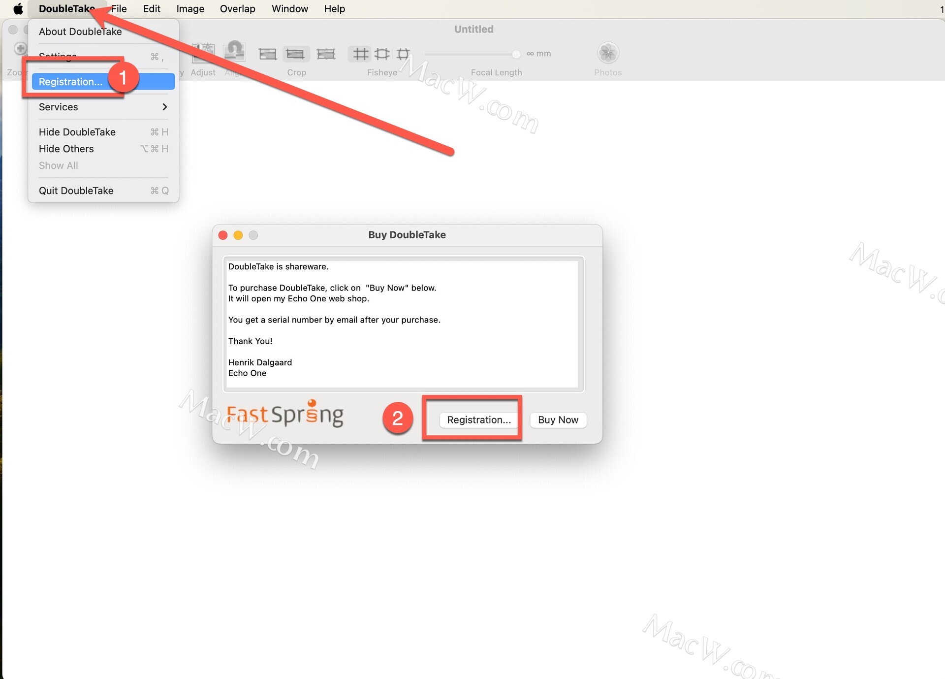 打开doubletake软件,在左上角菜单栏点击打开Registration,这里直接点击registration,如图: