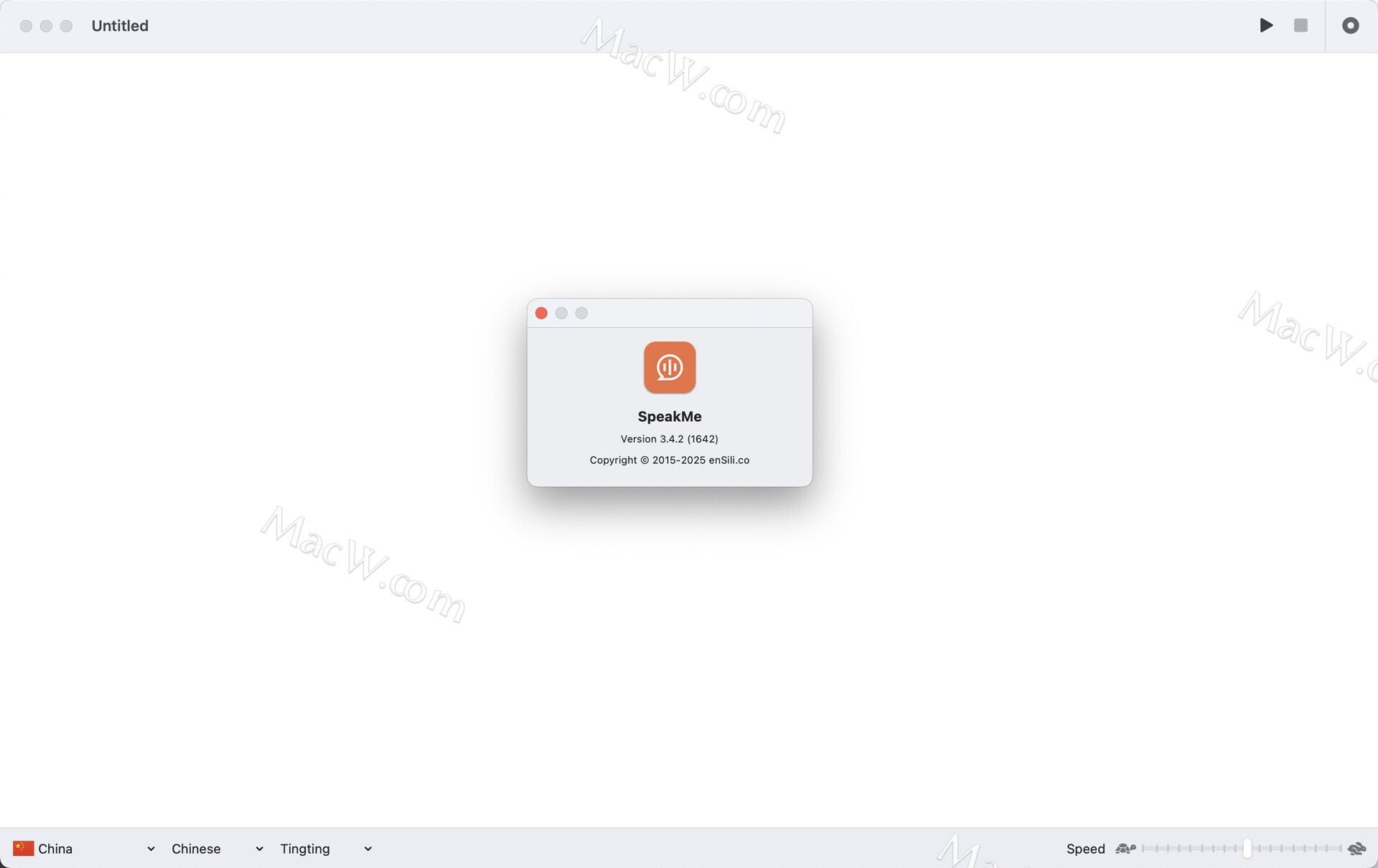 SpeakMe for Mac是一款功能强大的文本语音转换工具,能够将文本内容转化为自然流畅的语音,方便用户进行阅读和听写。它支持多种语言和语音风格,可以根据用户需求进行自定义设置,满足不同场景的需求。同时,SpeakMe还具备直观易用的用户界面,支持更改讲话速度,导出为多种音频格式,并提供定时关机等实用功能。无论是用于学习、工作还是娱乐,SpeakMe for Mac都能帮助用户提升效率和体验。测试环境:MacOS 15.0
