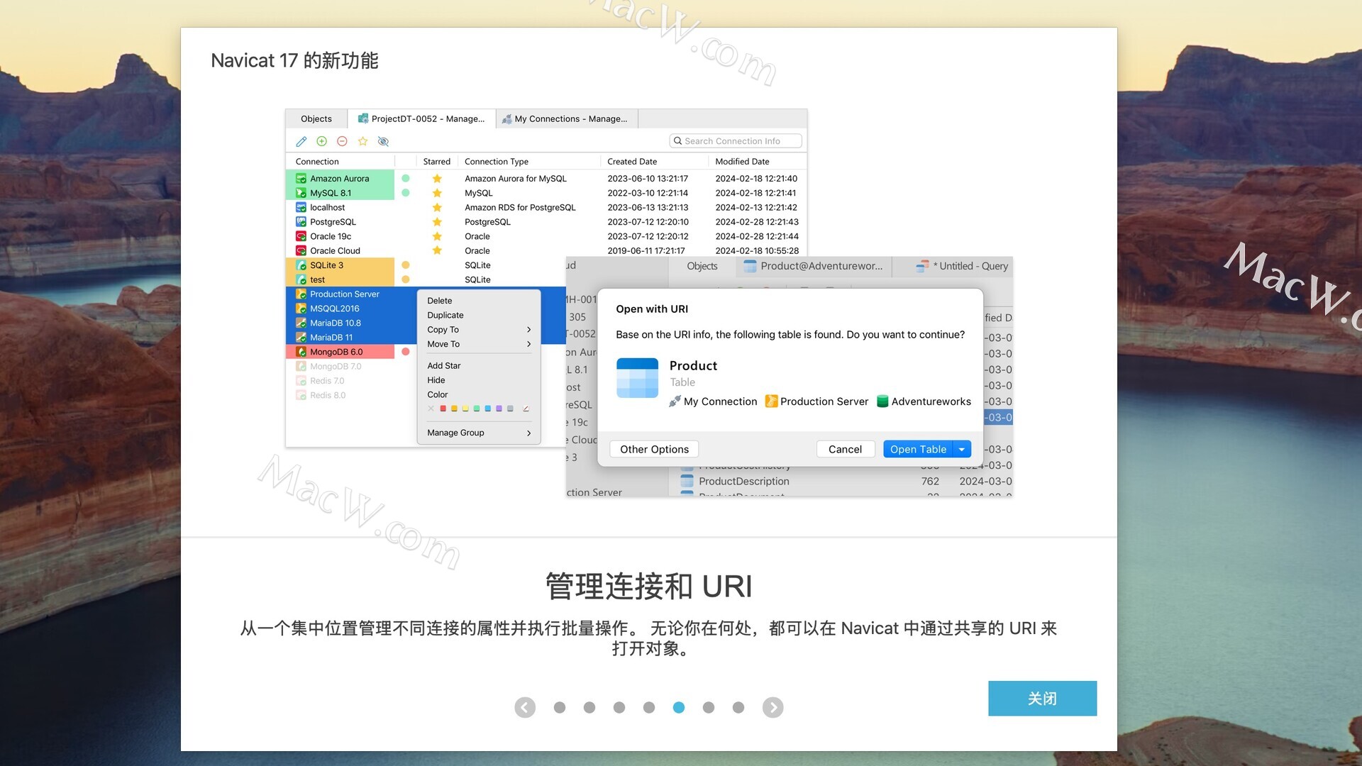 Navicat for MySQL mac中文版是一款功能强大、使用简单的数据库管理开发工具,对于数据需要大的用户来说非常实用,界面体验好,能使用函数快速得出各种数据,是做报表的得力工具。