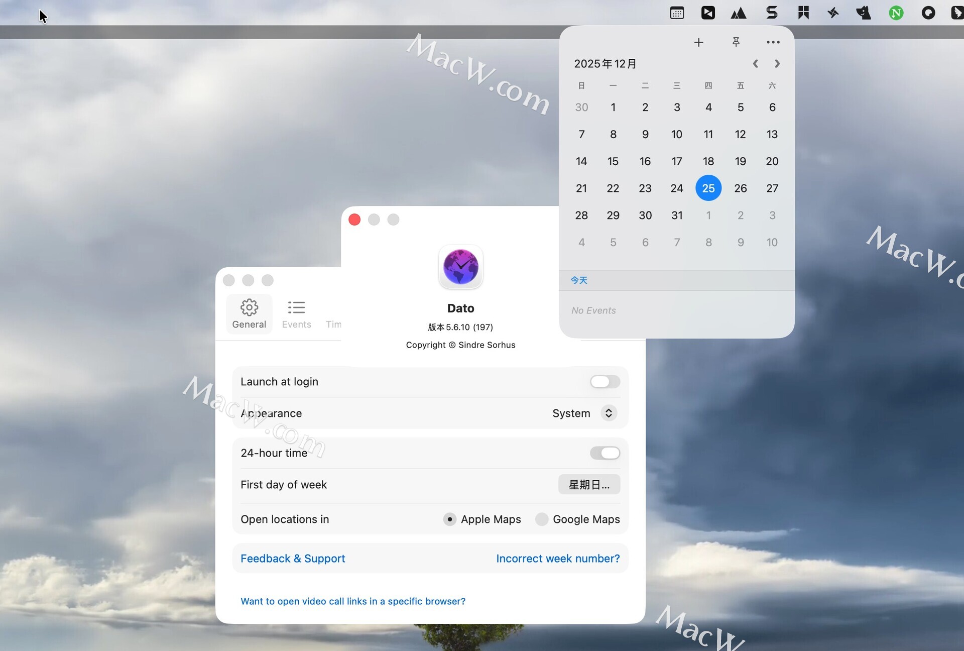 总的来说,Dato是一款多功能的中文日历和提醒应用程序,旨在帮助用户更好地管理时间和任务。它的直观界面和强大的功能使其成为Mac用户提高工作效率和日常组织的理想选择。测试环境:MacOS 15.5