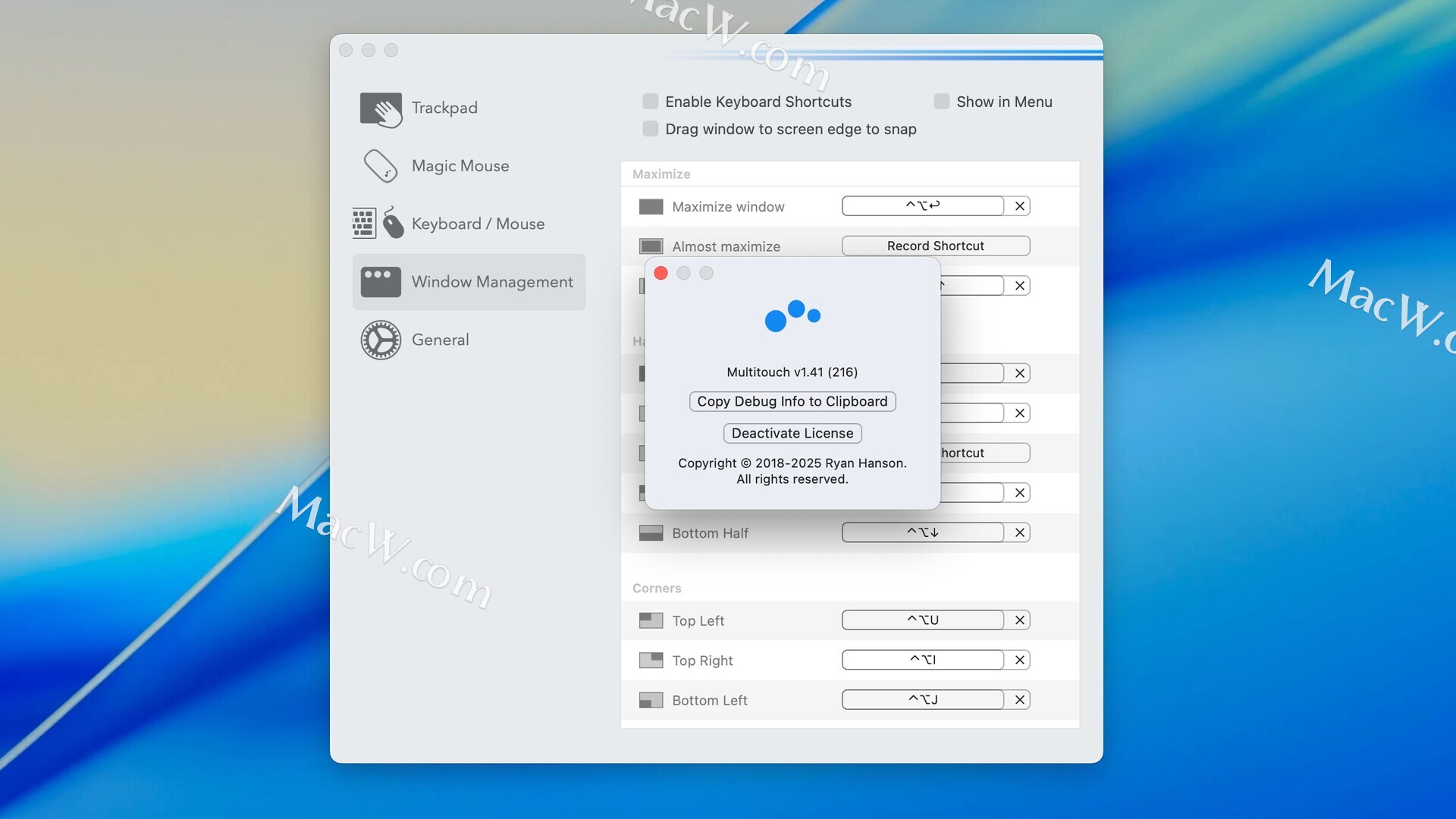 多点触控可让您将自定义动作绑定到特定的魔术触控板或魔术鼠标手势。 例如,三指点击可以执行粘贴。 通过执行键盘快捷键,控制浏览器的选项卡,执行鼠标中键单击等等来改进您的工作流程。Multitouch(以前称为TouchOven)轻松向macOS添加更多多点触控手势,并自定义手势的功能。Multitouch苹果触控软件是利用Magic Trackpad和Magic Mouse强大功能的优雅方式。