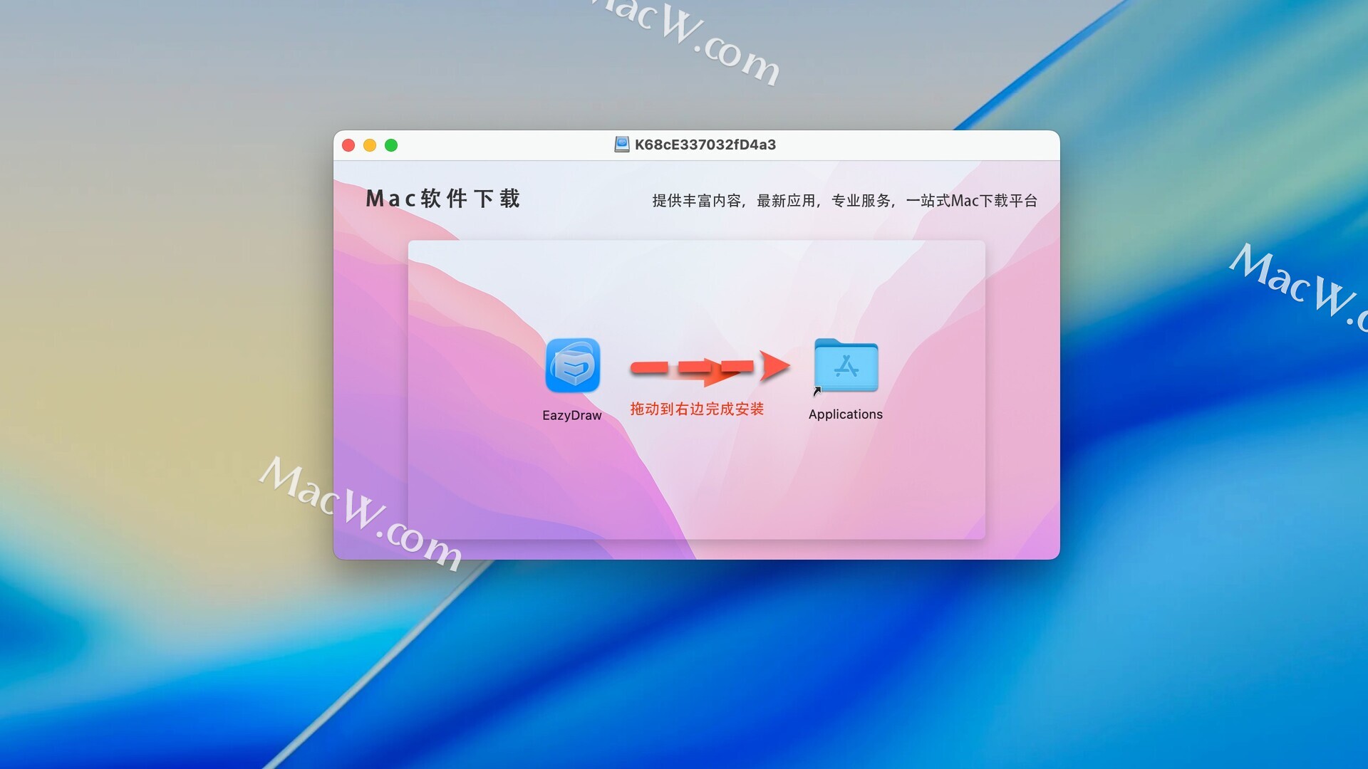 下载完成后,打开安装包,将左侧的软件拖动到右侧应用程序即可。
