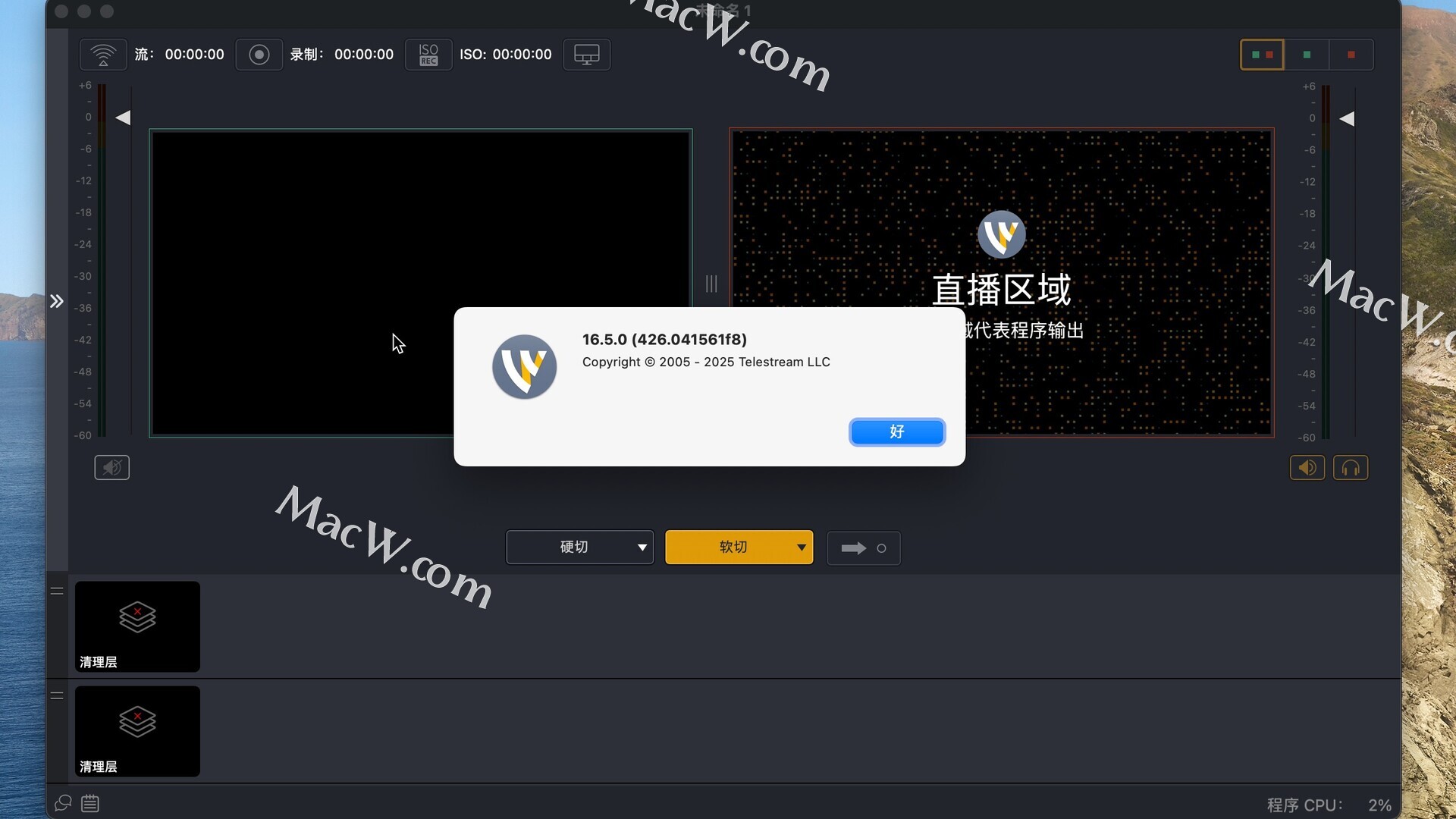 Wirecast Pro mac破解版,是一款现场网络视频直播工具,可以用于用于流式传输和录制高质量的直播视频到Facebook Live,YouTube Live,Twitter,Periscope等等,用户只需具备摄像头、互联网连接以及pc电脑,就能制作出专业现场直播活动。