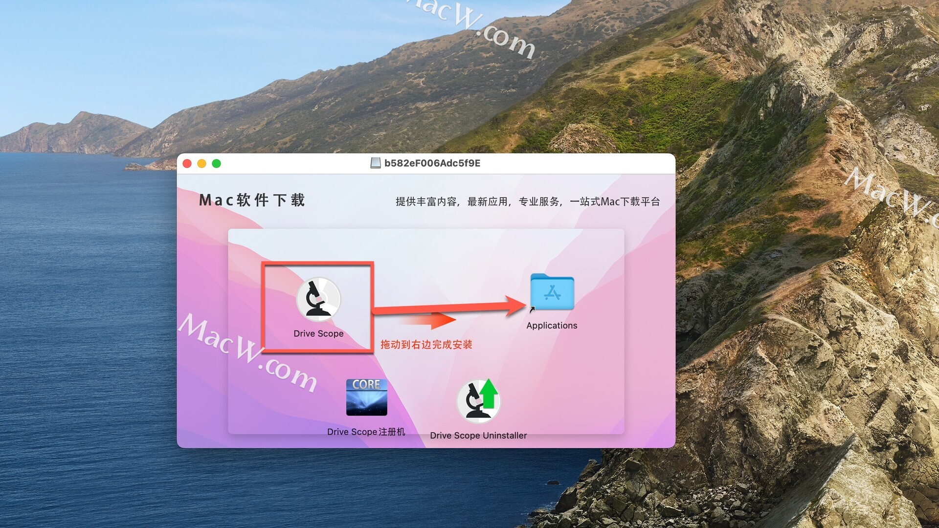 Drive Scop破解版下载完成后打开,将左侧Drive Scope拖动到右侧应用程序中进行安装