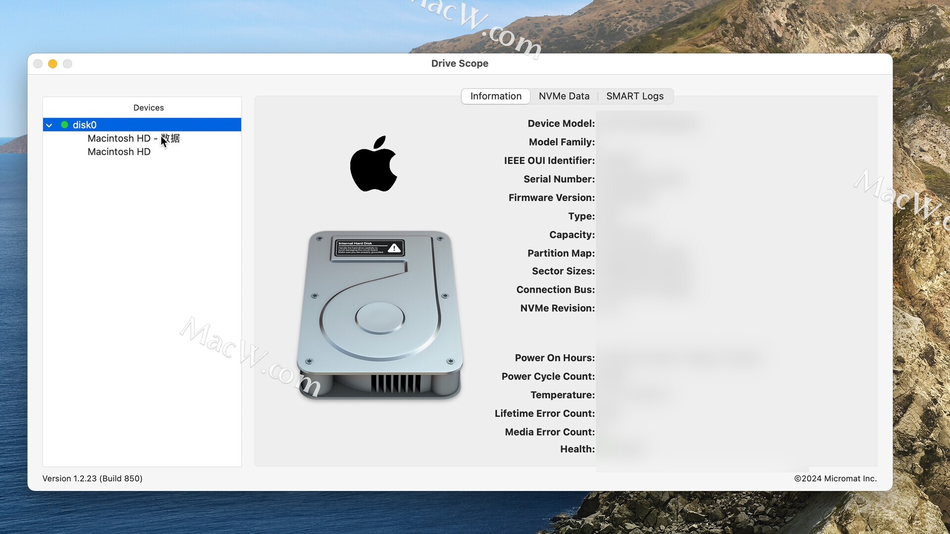 Drive Scope for Mac是一款先进的硬盘驱动器健康监测工具。它能全面检测Mac连接的驱动器健康状况,包括固态驱动器(SSD)和机械硬盘。通过读取SMART属性,Drive Scope能够提前预警驱动器可能出现的故障,并提供深入的运行状况分析。用户可以查看详细的驱动器属性,了解哪些属性可能导致整体故障,哪些仅仅是信息性的。此外,它还能触发驱动器的内部测试,确保SMART数据保持最新。总之,Drive Scope是Mac用户保护数据安全、预防硬盘故障的理想选择。测试环境:MacOS 14.3.1