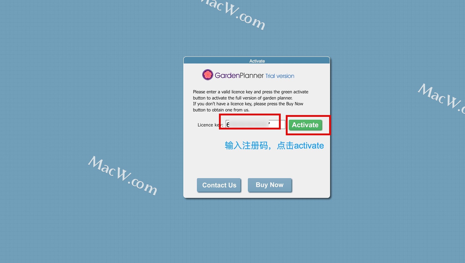 - 打开Garden Planner Mac版后,自动弹出激活页面,点击