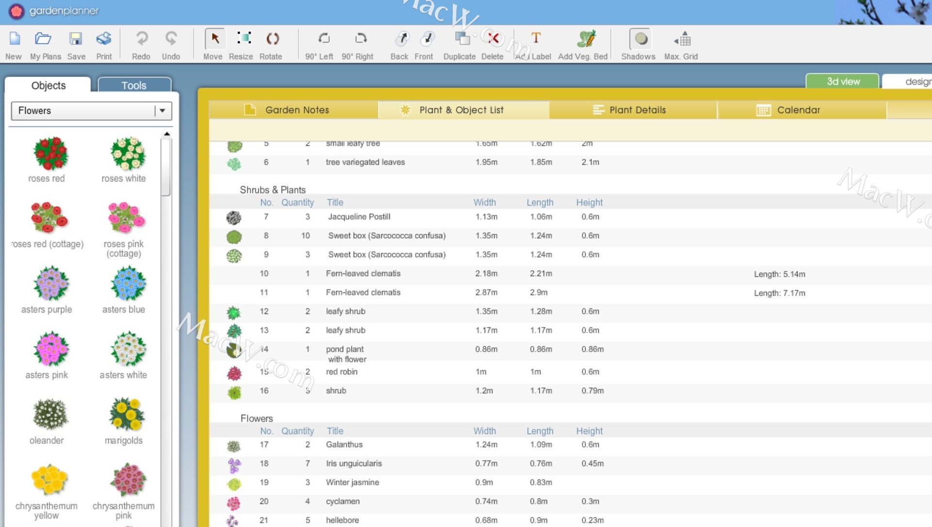 3.创建计划,图像,花园笔记然后生成高质量的彩像或打印出您的设计。创建所有植物和对象的列表,并添加您自己的花园笔记