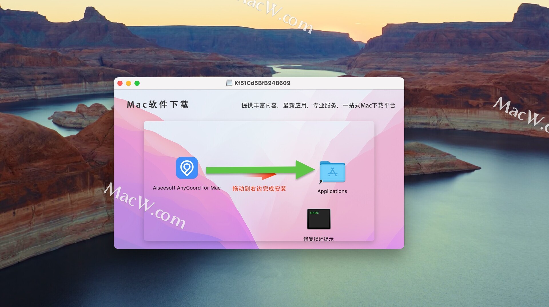 安装包下载完成后打开,将左侧的Aiseesoft AnyCoord拖动到右侧的文件夹中即可