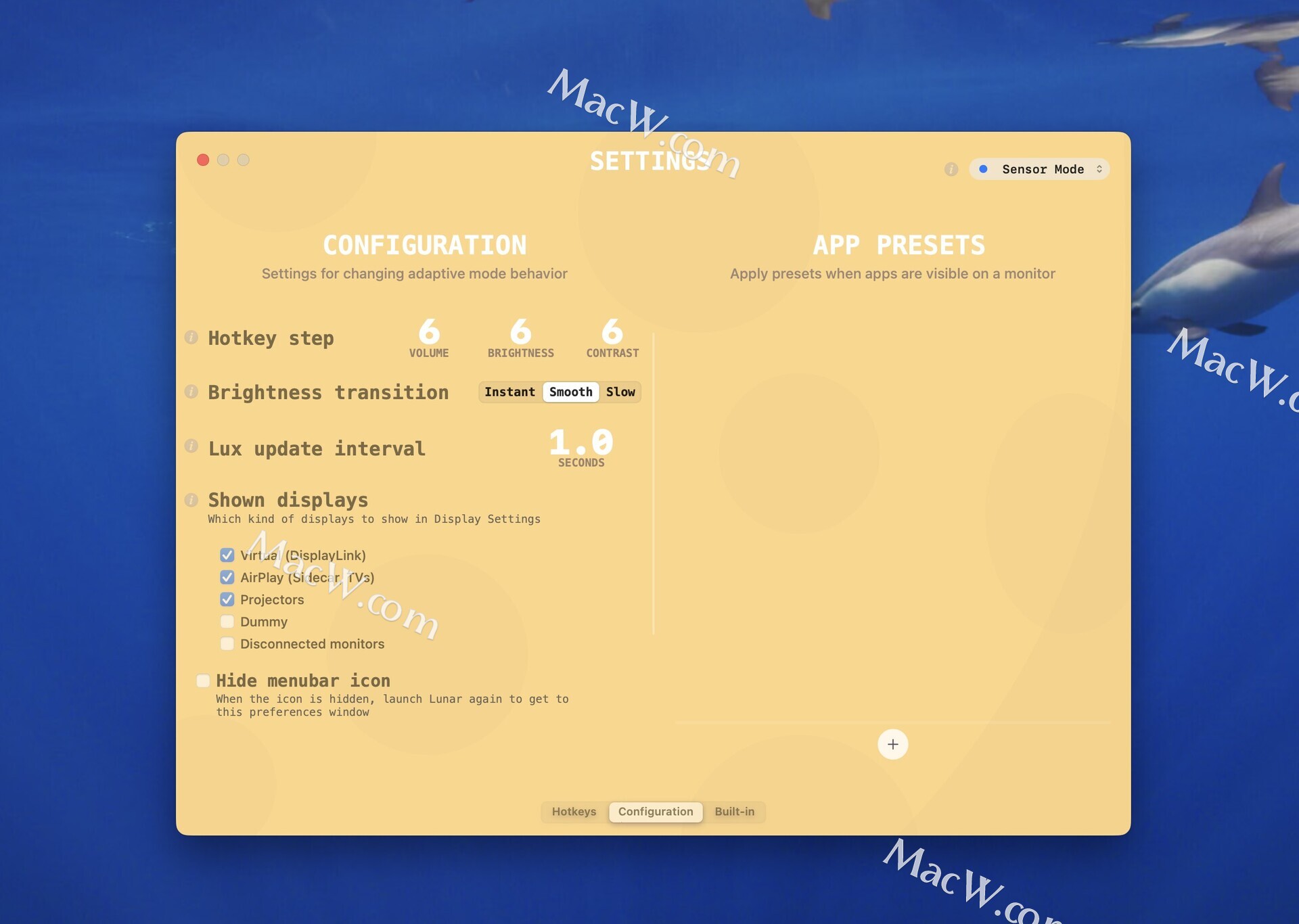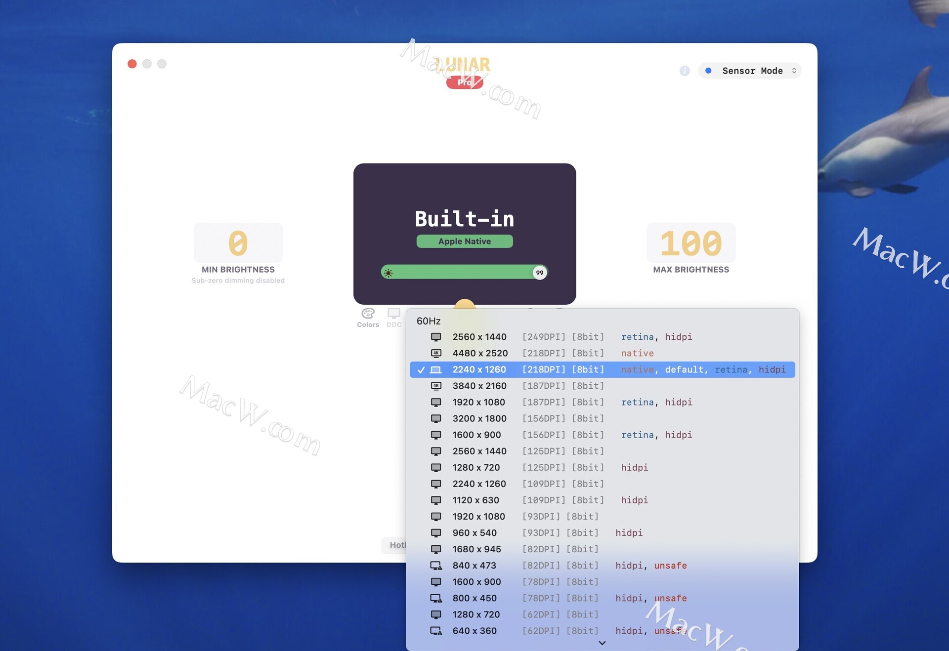 3、启动时,Lunar将覆盖显示器具有的任何亮度/对比度设置