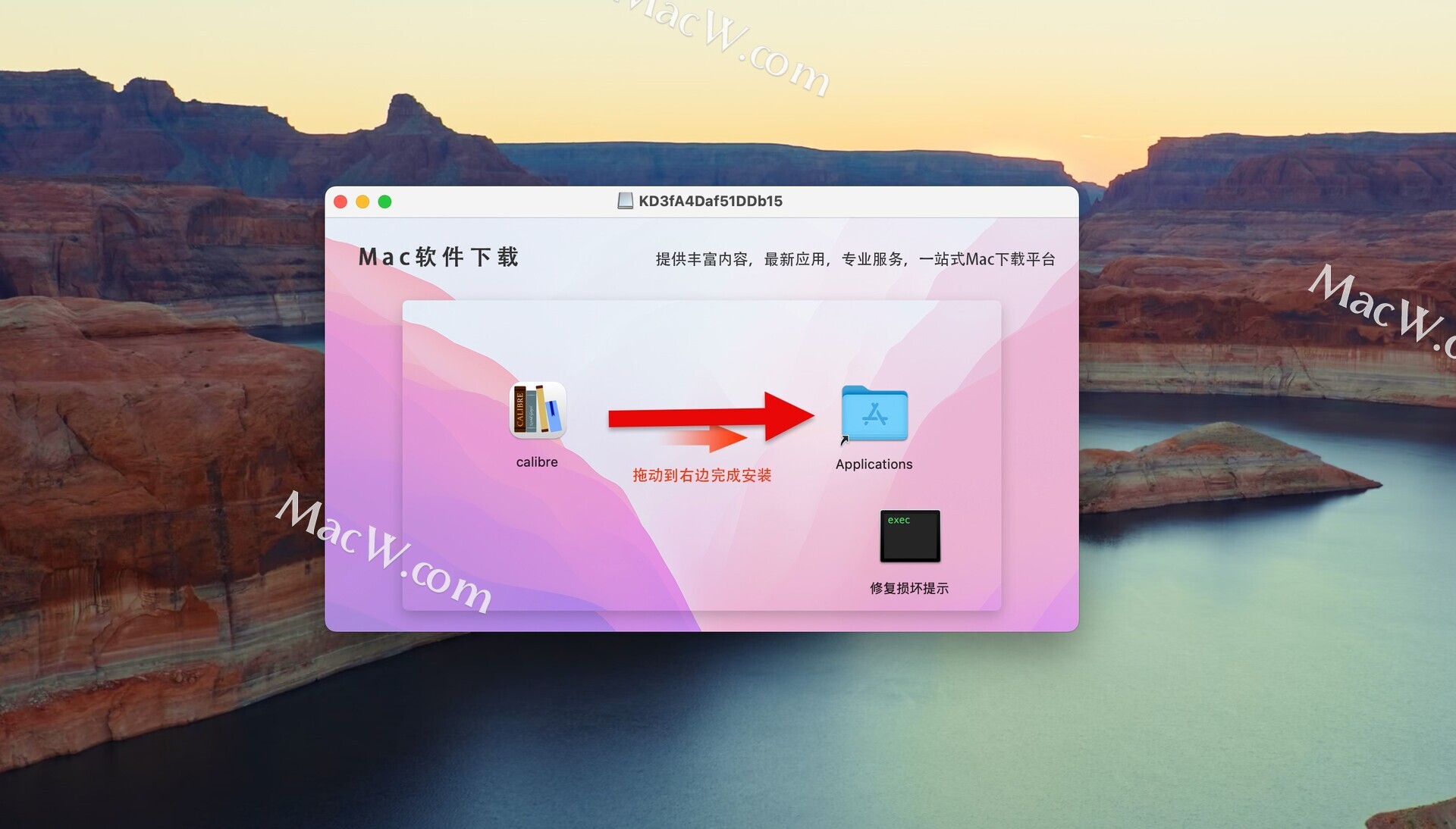 安装包下载完成后,拖动左侧的Calibre到右侧应用程序中即可