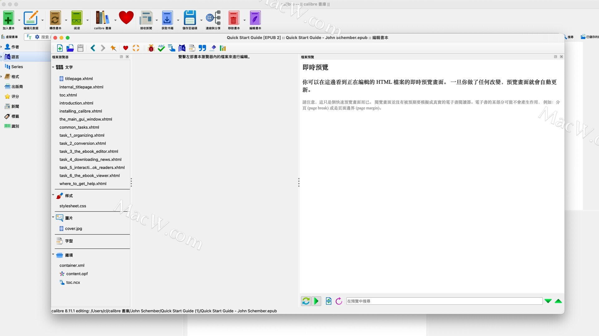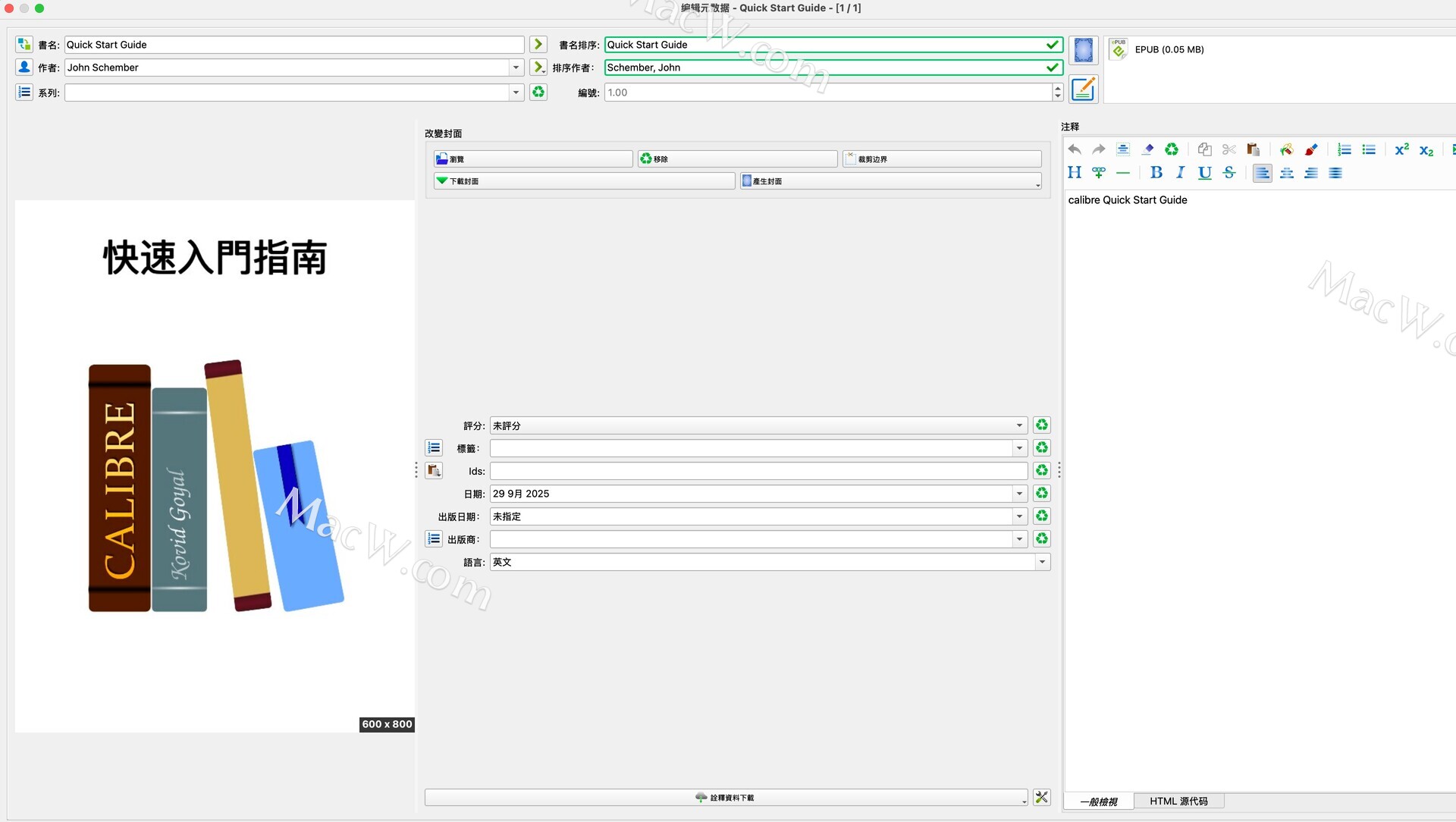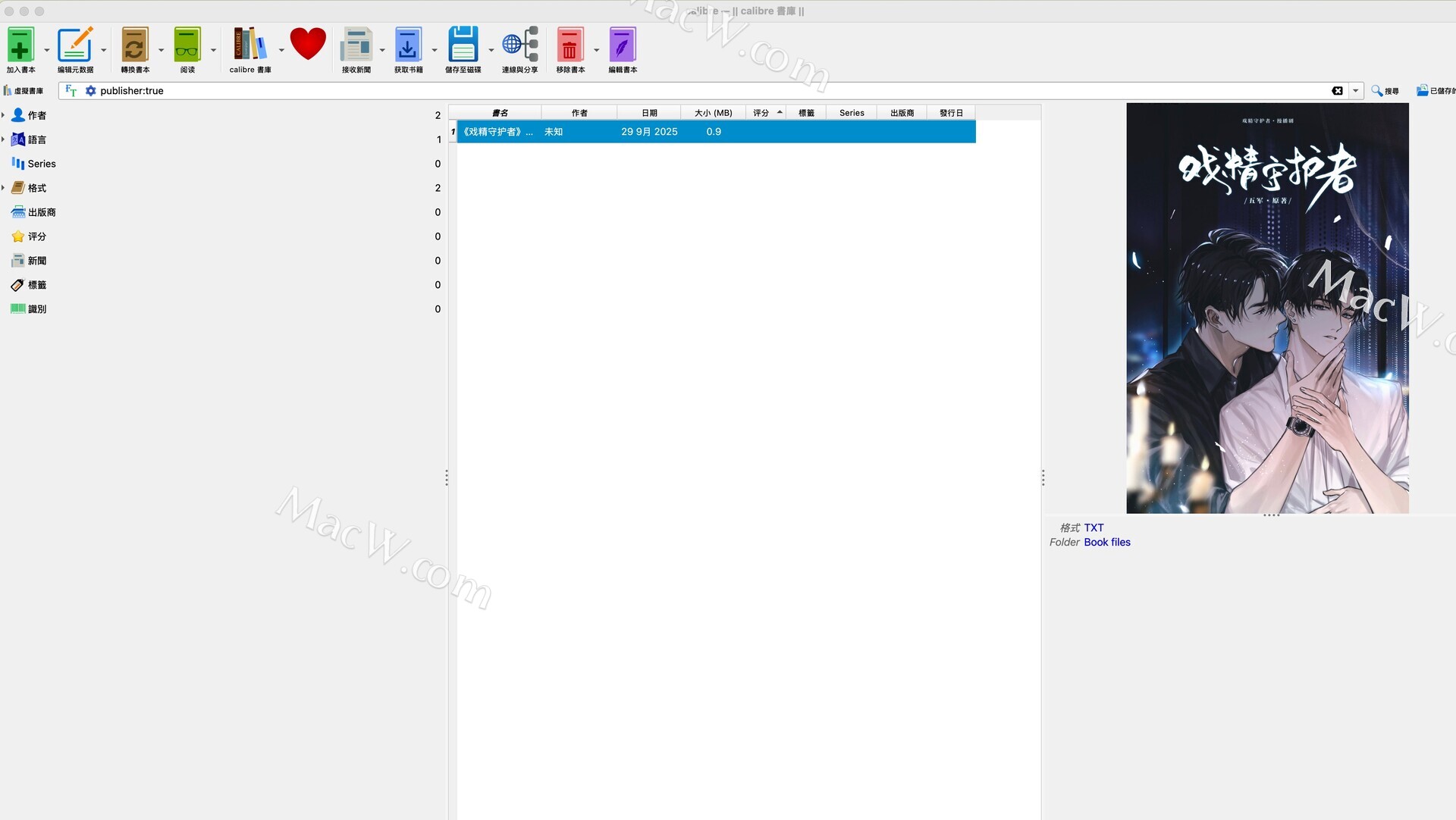 Calibre for Mac一款受到用户喜爱的电子书阅读管理工具。calibre中文版具备格式转换功能,有了calibre您就可以将自己的图书转换为各种格式,使用非常的简单测试环境:MacOS 15.5