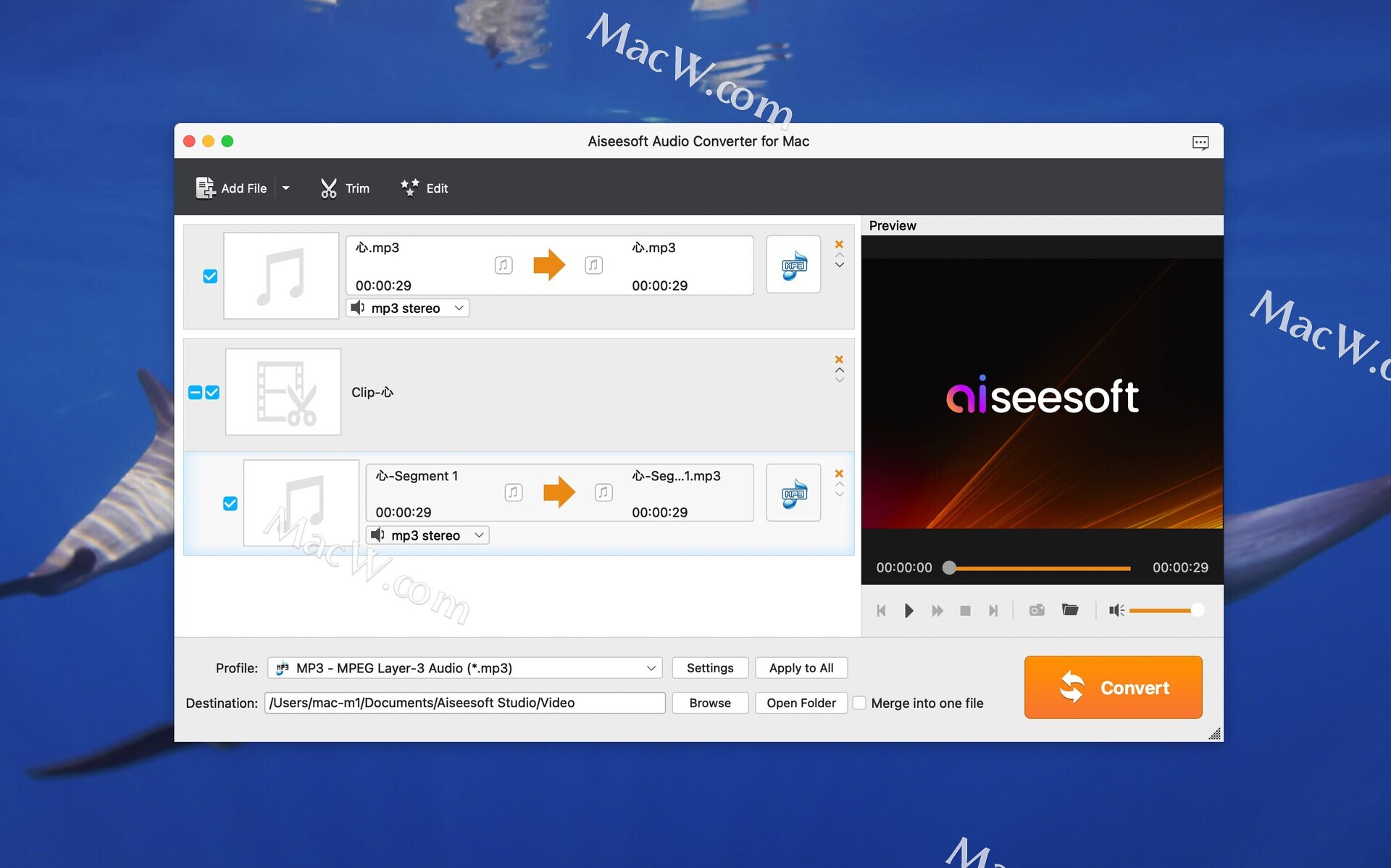- 高音质转换:Aiseesoft Audio Converter for Mac在转换过程中保持了高音质,确保用户在转换后的音频文件中获得与原始文件相近的音质体验。