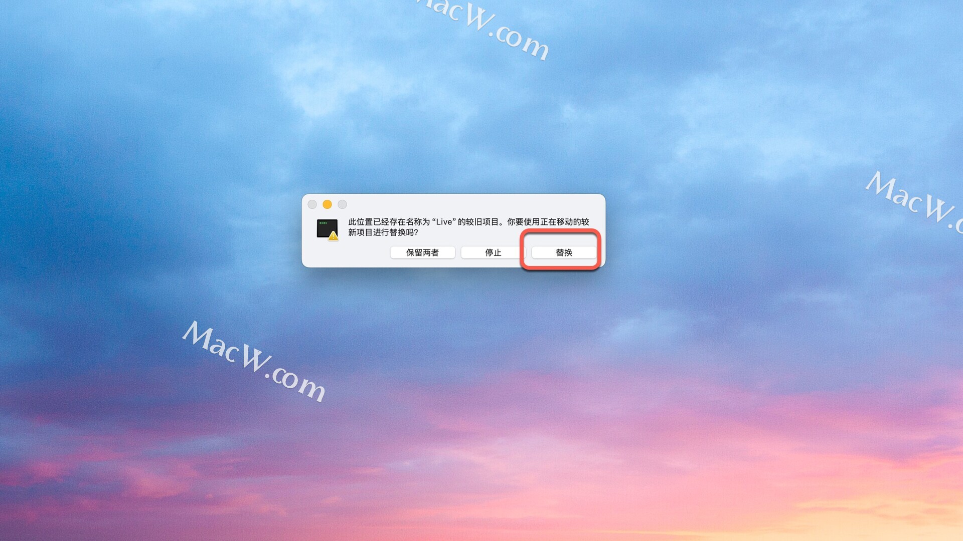 将左侧文件拖动到右侧文件夹中替换