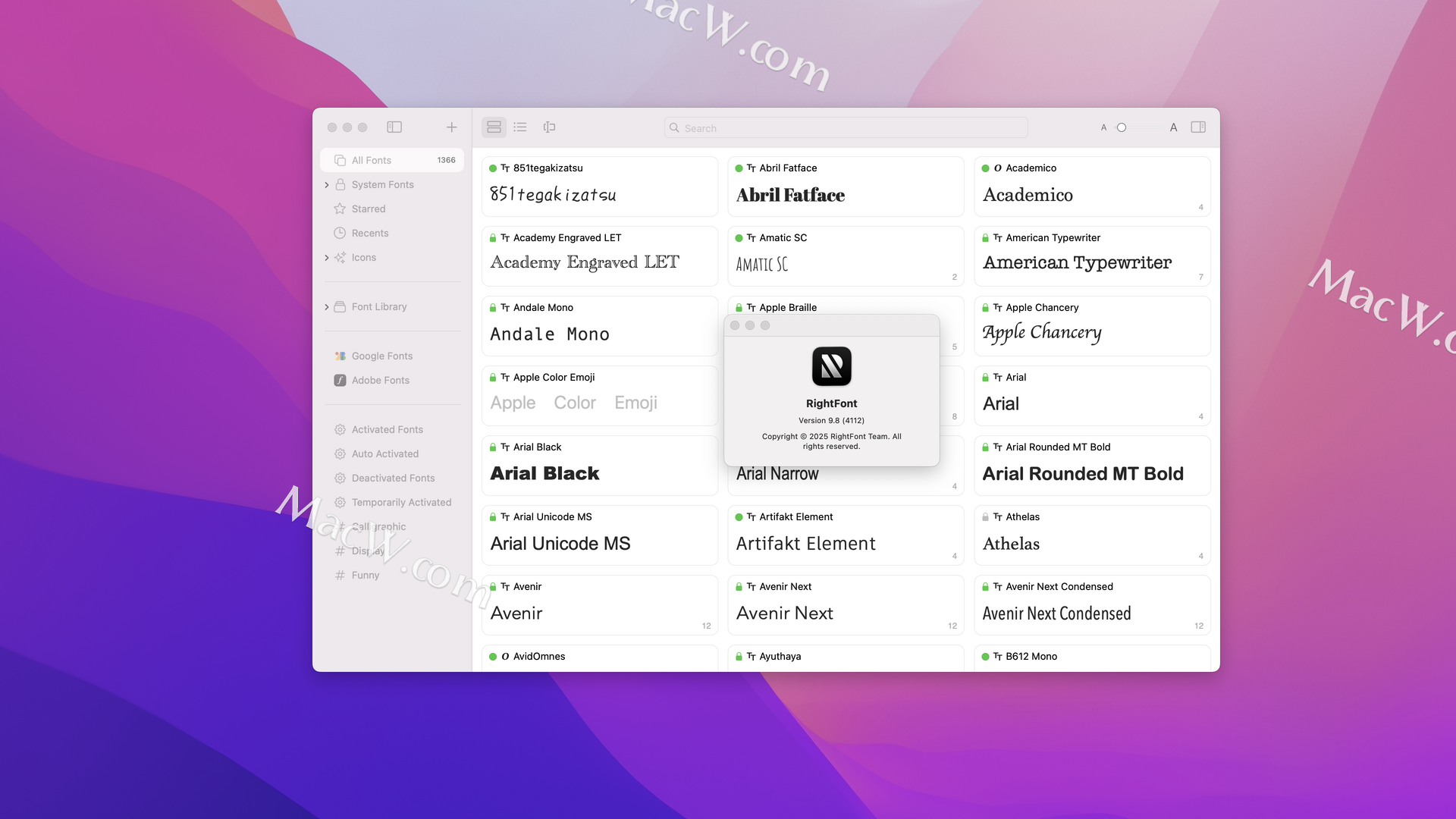 RightFont 是一款适用于Mac的字体管理应用程序,允许用户在其计算机上安装、组织和管理字体。它支持各种字体文件格式,包括 TTF、OTF、TTC 和 Type1。