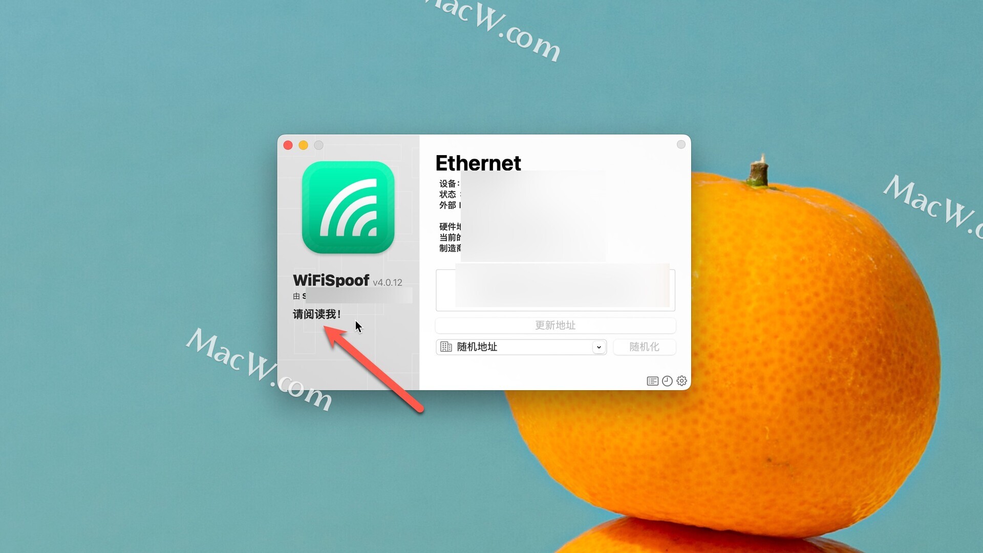 安装完成后点击请阅读我,安装帮助工具就可以更改你的Mac地址了