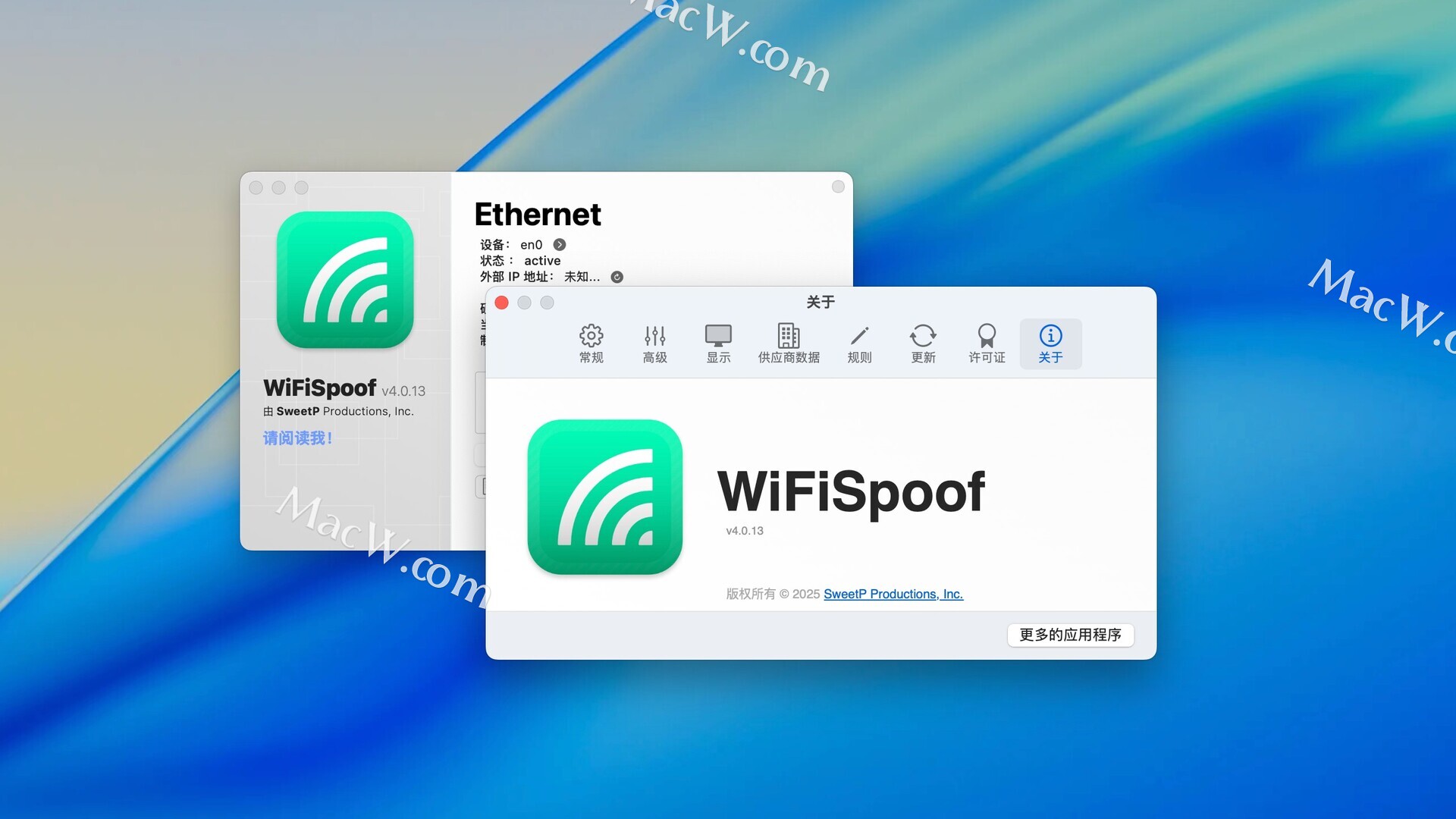 总之,WiFiSpoof for Mac是一款功能强大、操作简便的MAC地址修改工具,可以满足用户在保护隐私和网络安全方面的需求,提高网络使用体验和安全性。测试环境:MacOS 15.5