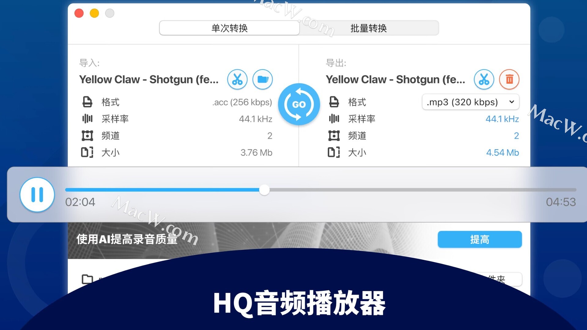 总的来说,All to MP3 Audio Converter for Mac是一款功能强大、操作简便的音频转换软件,适用于各种场景和需求。无论是需要将音频文件转换为MP3格式以便在移动设备上播放,还是需要对音频文件进行剪辑或自定义设置,该软件都能提供满意的解决方案。测试环境:MacOS 15.5