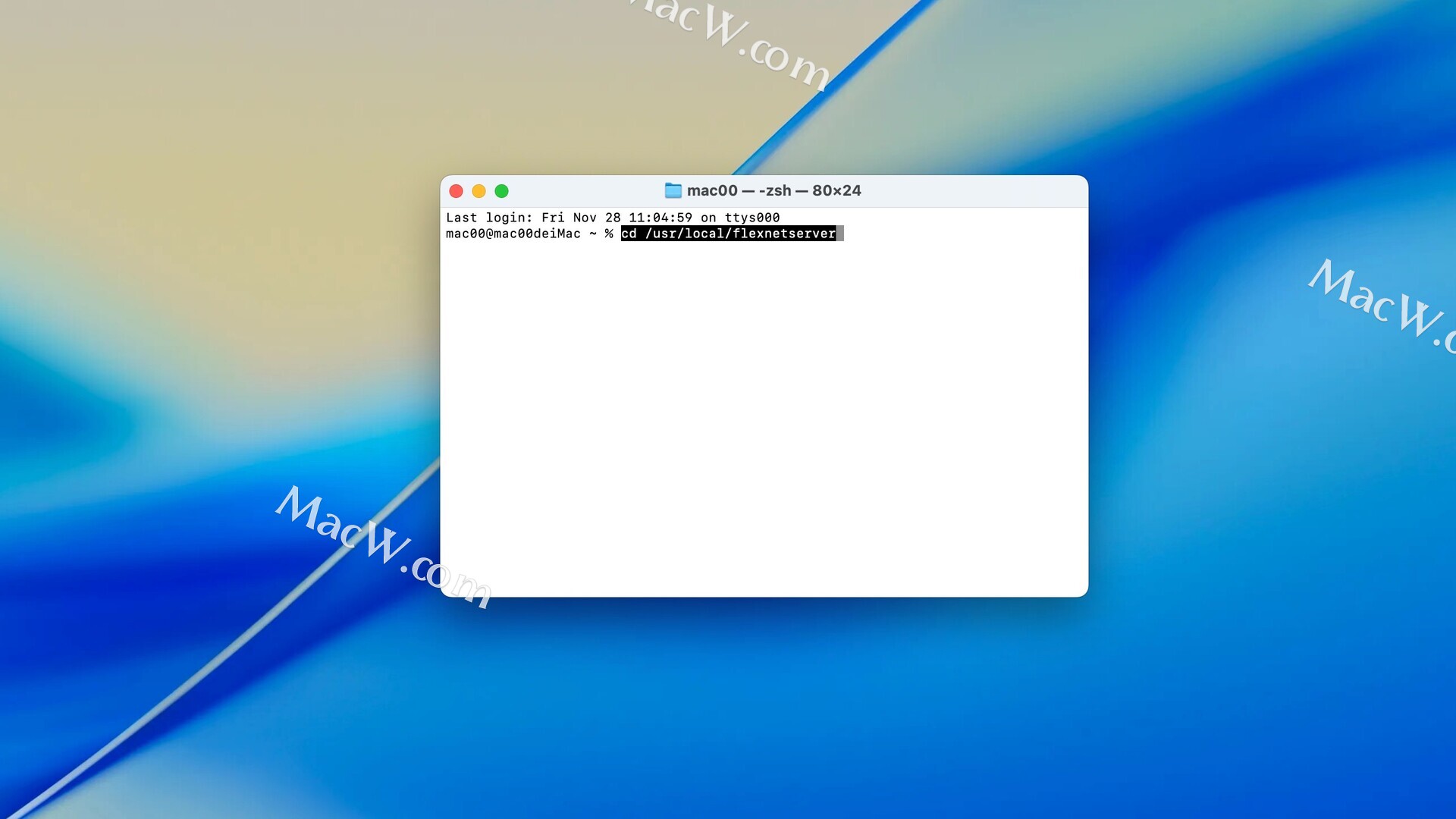 替换完成后,应用程序-实用工具中打开终端,执行第一个命令cd /usr/local/flexnetserver ,回车