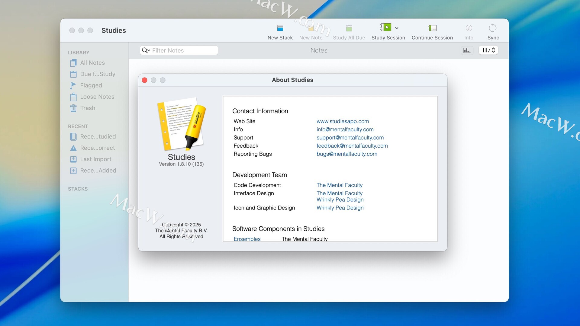 Studies for Mac是一款mac系统上非常实用的抽认卡制作软件。生活中有些事情是必须记住的。事实,公式,文字,图画,日期,程序,甚至名字和面孔。你所做的每一事都包含了你头脑中需要的信息。研究可以帮助解决这个问题。可以快速方便的制作Flashcards,提高学习效率!测试环境:MacOS 15.0