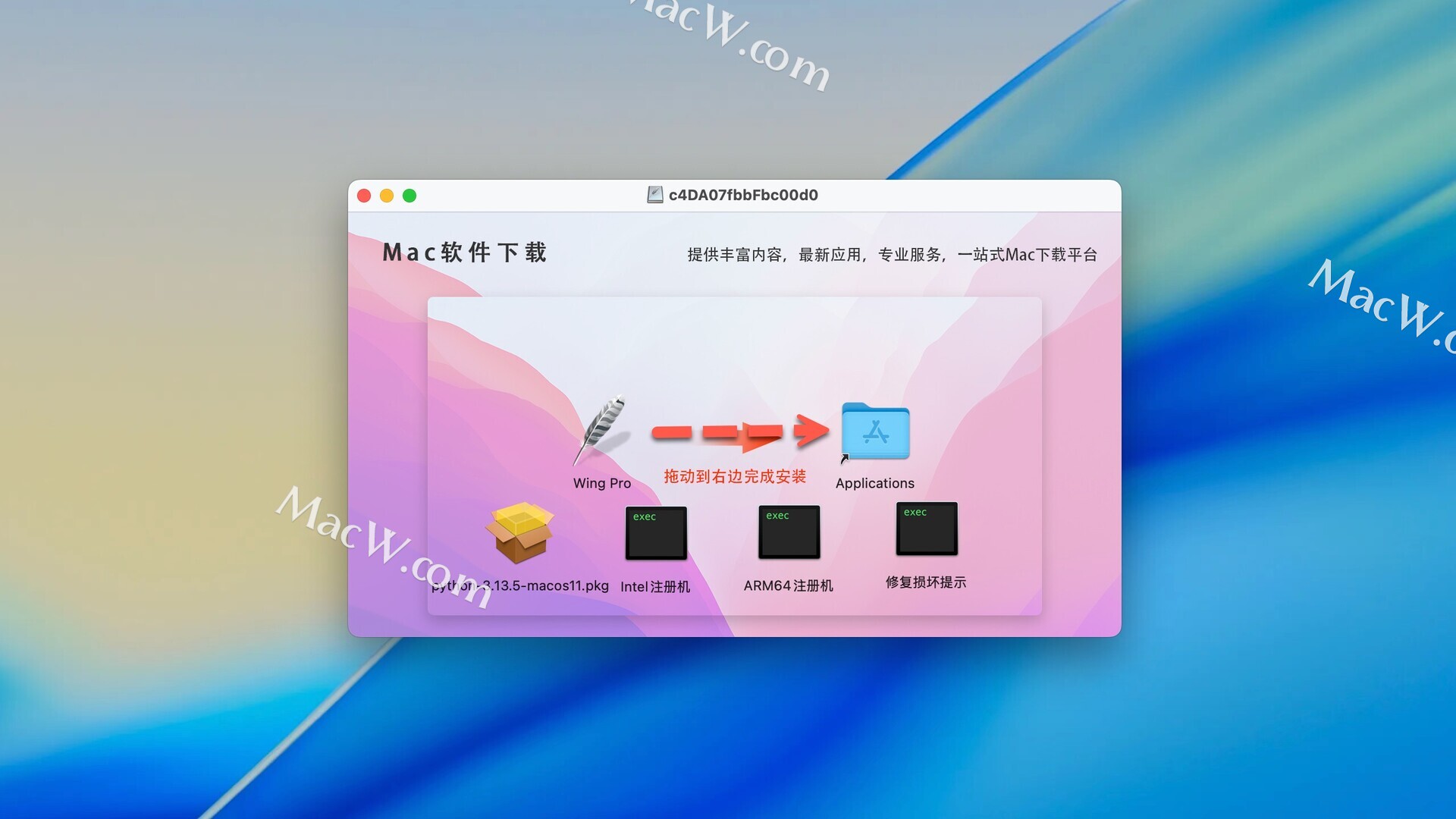 将左侧的WingPro拖到右侧的应用程序进行安装
