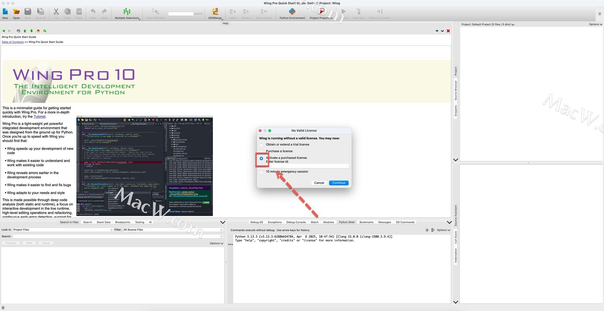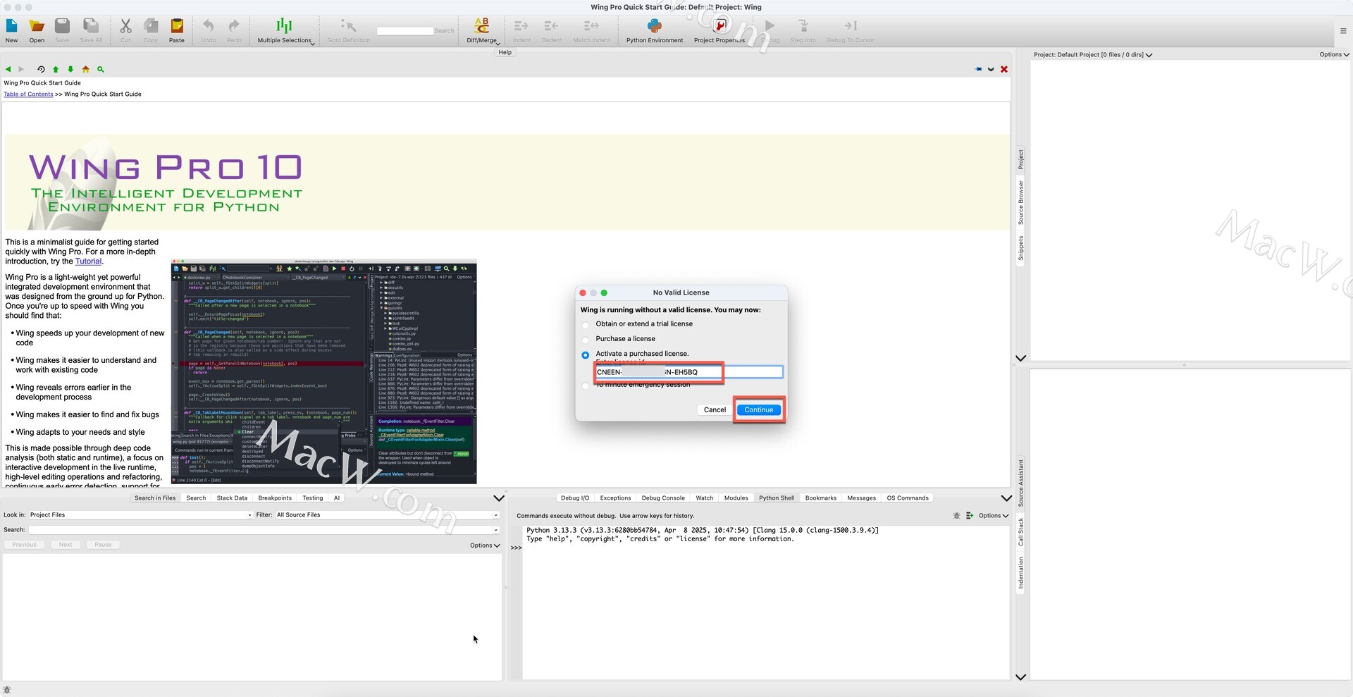 温馨提示:WingPro mac版需要全程断网破解!软件下载完成后,先双击python.pkg根据提示进行安装