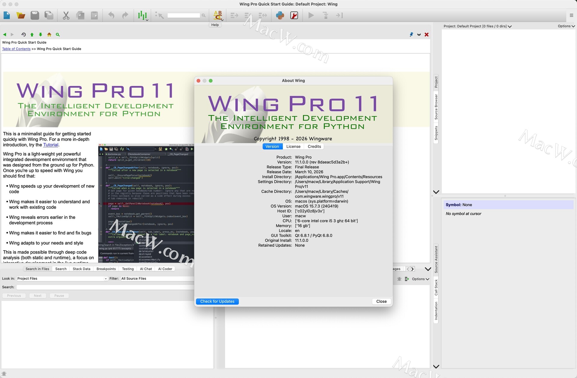 总的来说,WingPro for Mac是一款功能强大、易于使用的Python开发环境,适用于所有需要编写、调试和测试Python代码的开发人员。测试环境:MacOS 15.0
