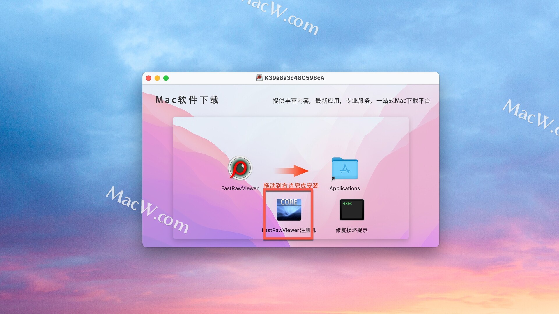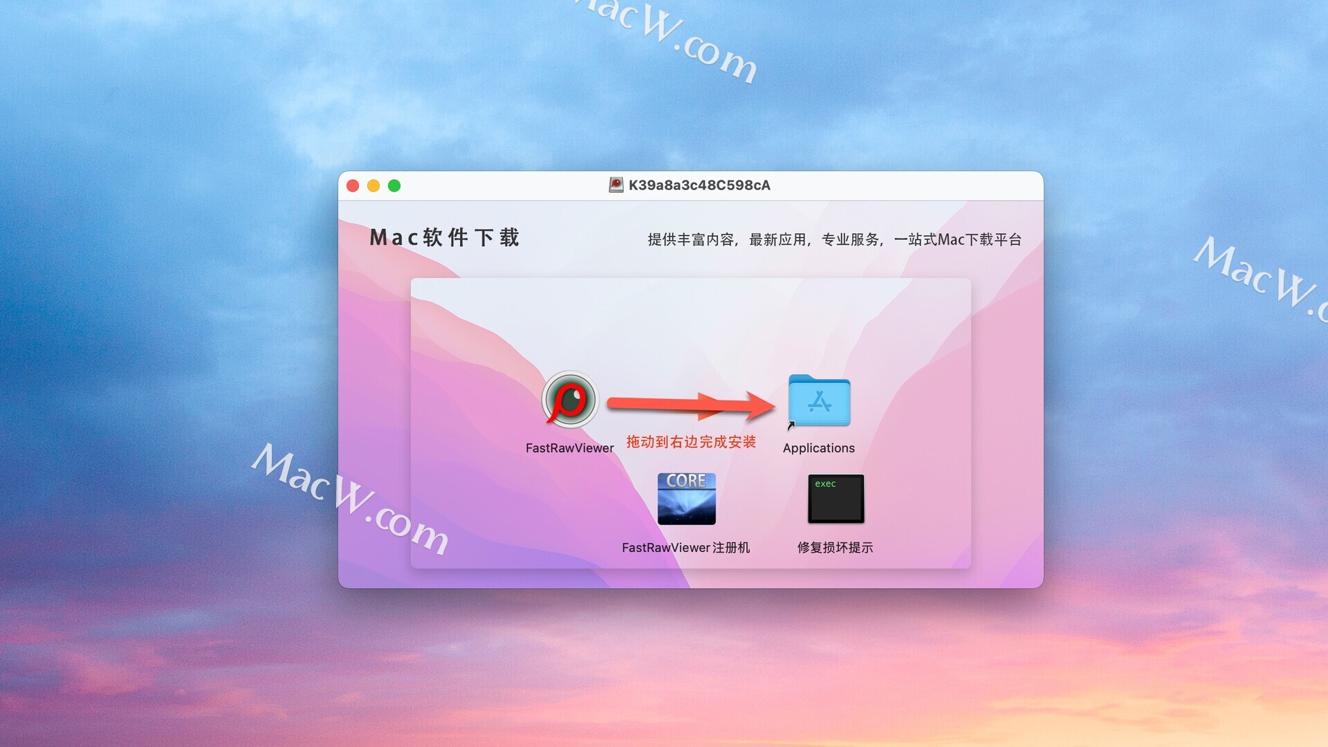 下载完成后,打开安装包,将左侧文件拖动到右侧应用程序