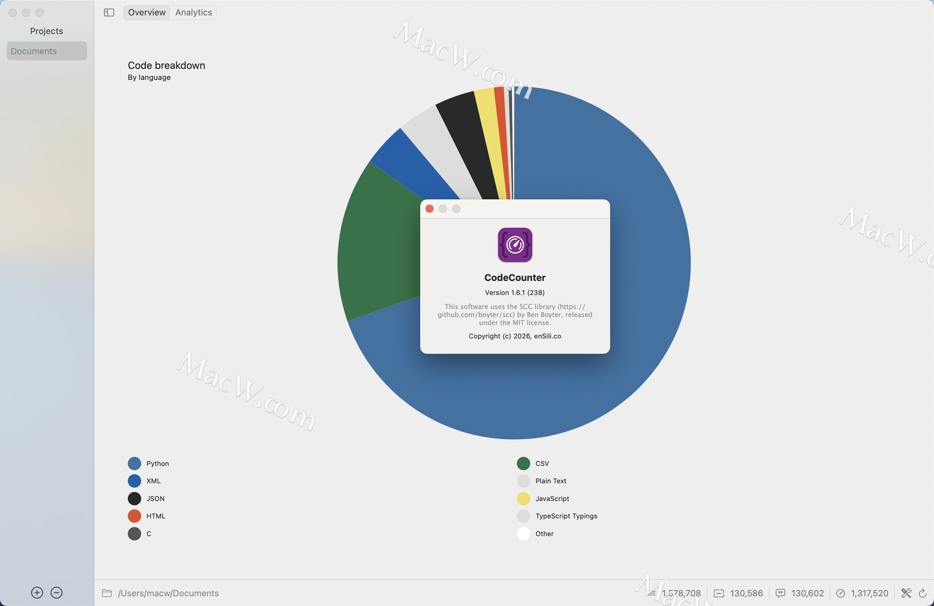 CodeCounter for Mac是一款专为Mac用户设计的代码计数器工具,旨在帮助开发者快速统计代码行数,从而轻松掌握项目的规模和进度。