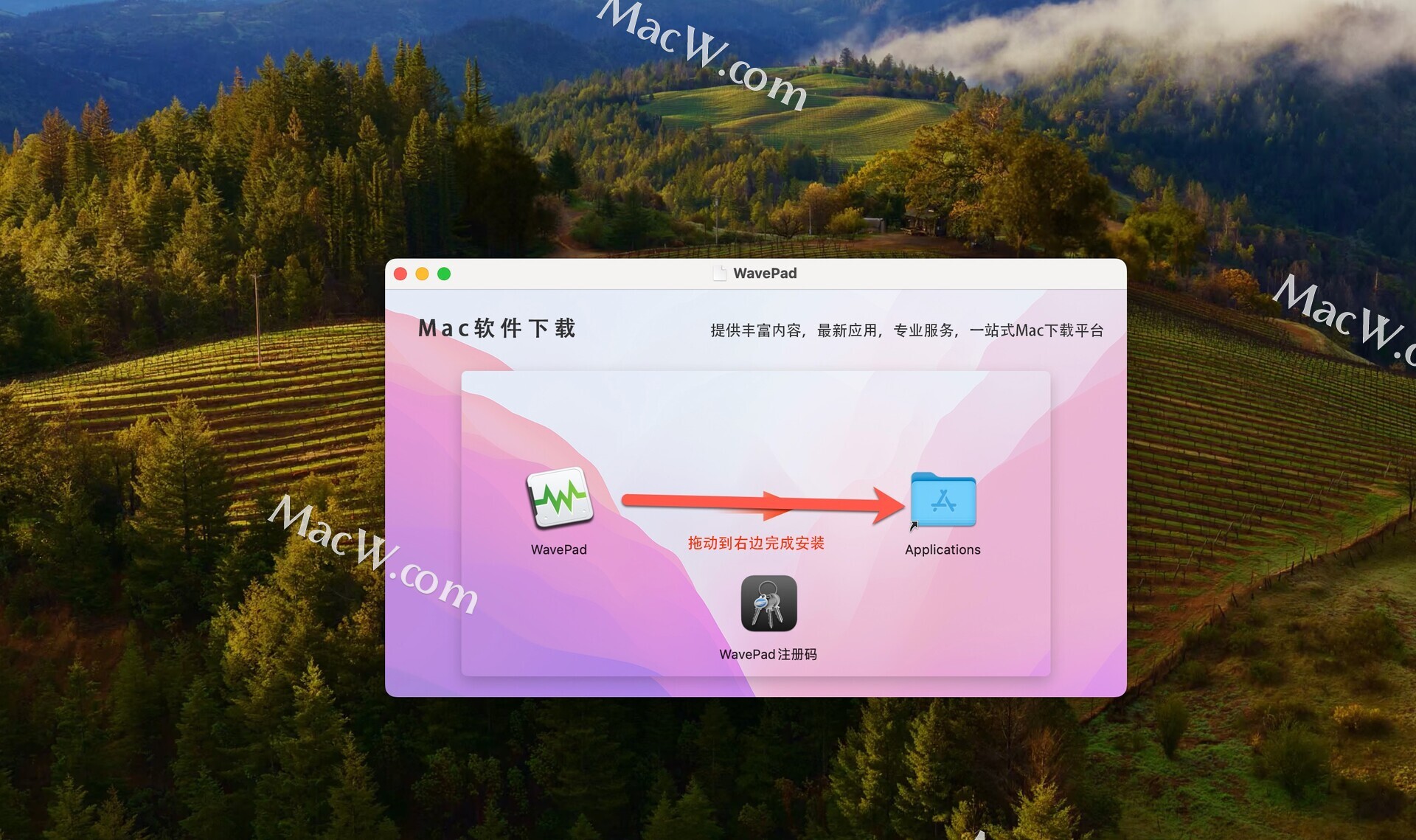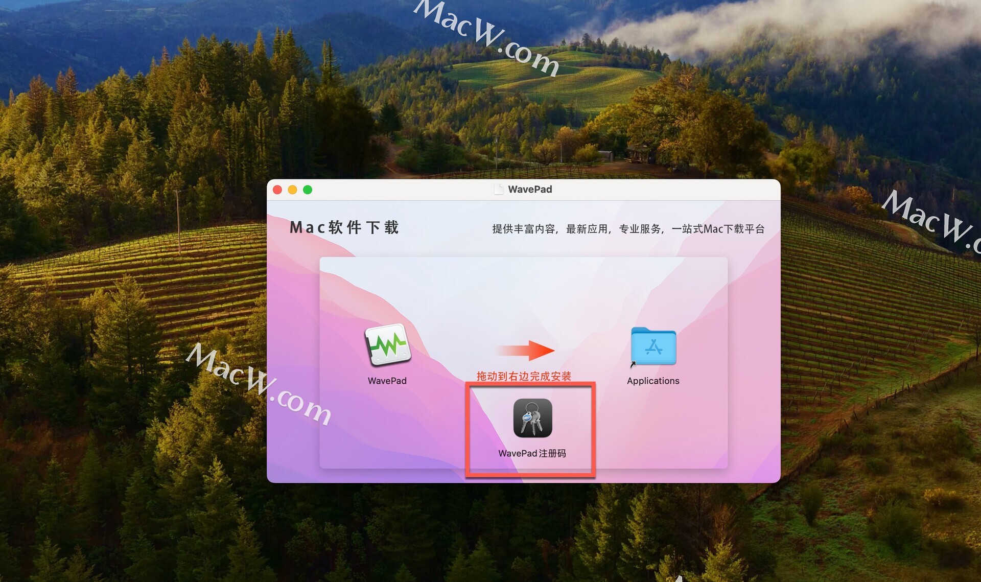 回到NCH WavePad Mater for Mac镜像包,打开WavePad注册码