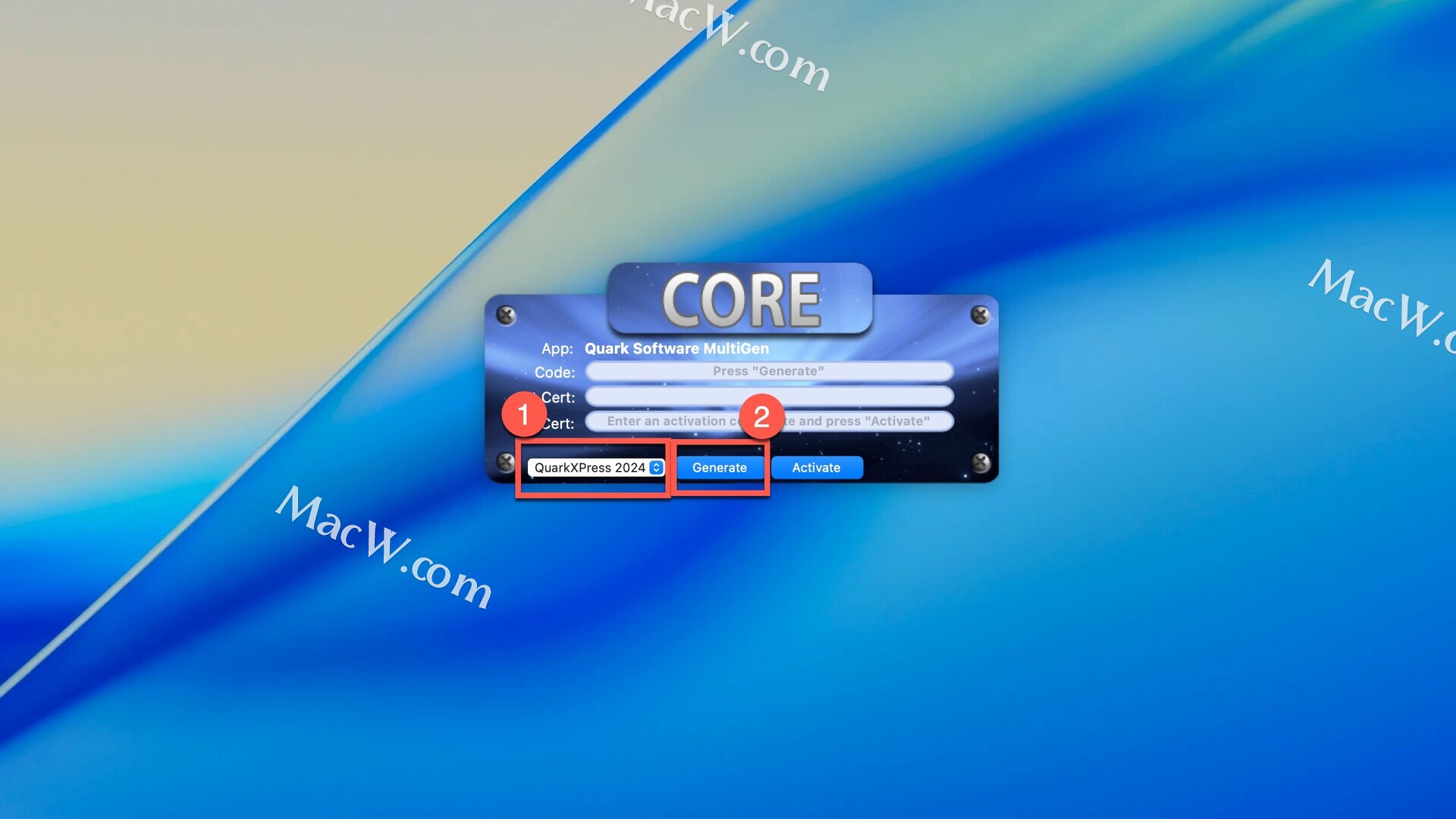 弹出注册机页面,选择QuarkXPress 2024 然后点击Generate生成注册码并复制,如图