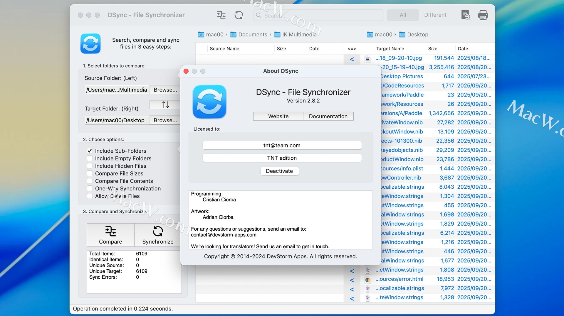 使用最新版本的 DSync 中的高级算法,将大文件夹与许多文件同步不会成为问题。您甚至可以通过跳过、删除或反转您选择的文件的复制方向来微调您的同步。