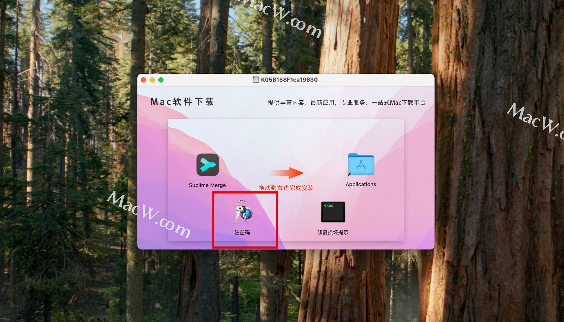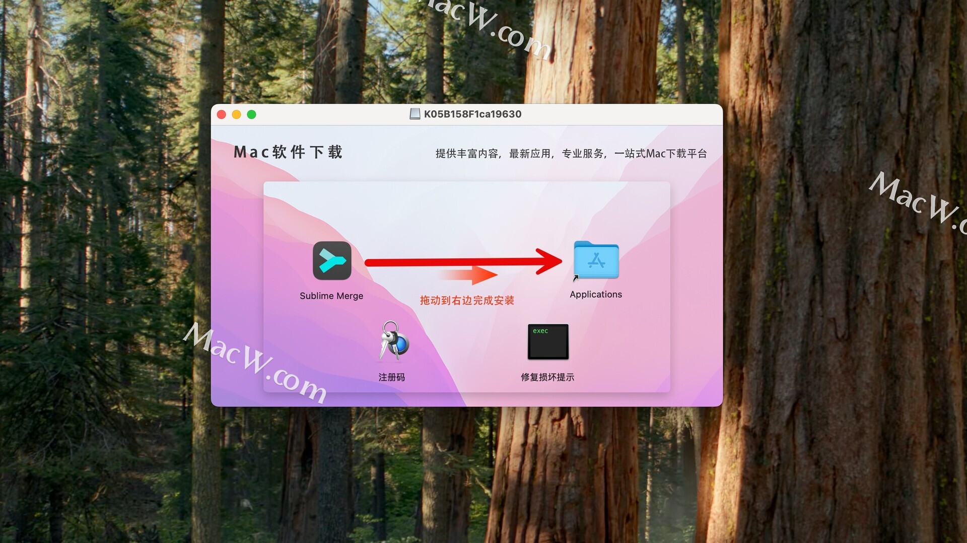 软件安装包下载完成后,拖动左侧的Sublime Merge到右侧应用程序中。