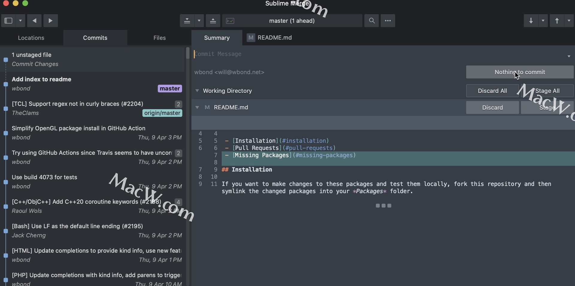 Sublime Merge Mac激活版是mac上一款非常强大的git客户端工具,Sublime Merge破解版与Sublime Text构建在同一个自定义平台上,具备非常出色的响应能力,Sublime Merge破解版所有的内容都是可拓展的,比如菜单、主题以及命令调色板,都能够通过简单的JSON文件进行自定义。小编现为您带来Sublime Merge 破解版下载,需要的朋友欢迎前来下载使用!测试环境:MacOS 13.1