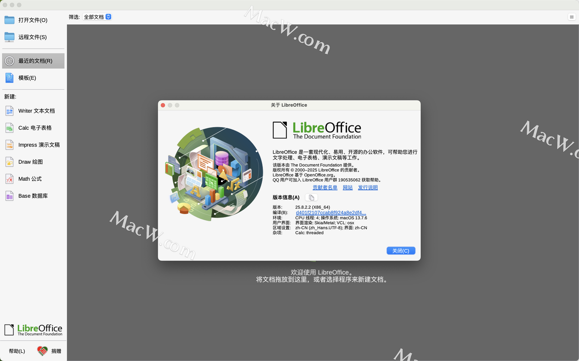 LibreOffice 是一款自由、免费的跨平台办公套件,包含 Writer 文字处理、Calc 电子表格、Draw 绘图、Impress 演示文稿、Math 公式、Base 数据库管理等组件,可在 Windows、GNU Linux、macOS、FreeBSD 等多个操作系统上运行。LibreOffice 默认使用开放文档格式 (ODF),但也能很好地支持 doc/docx、xls/xlsx 等专有文档格式。