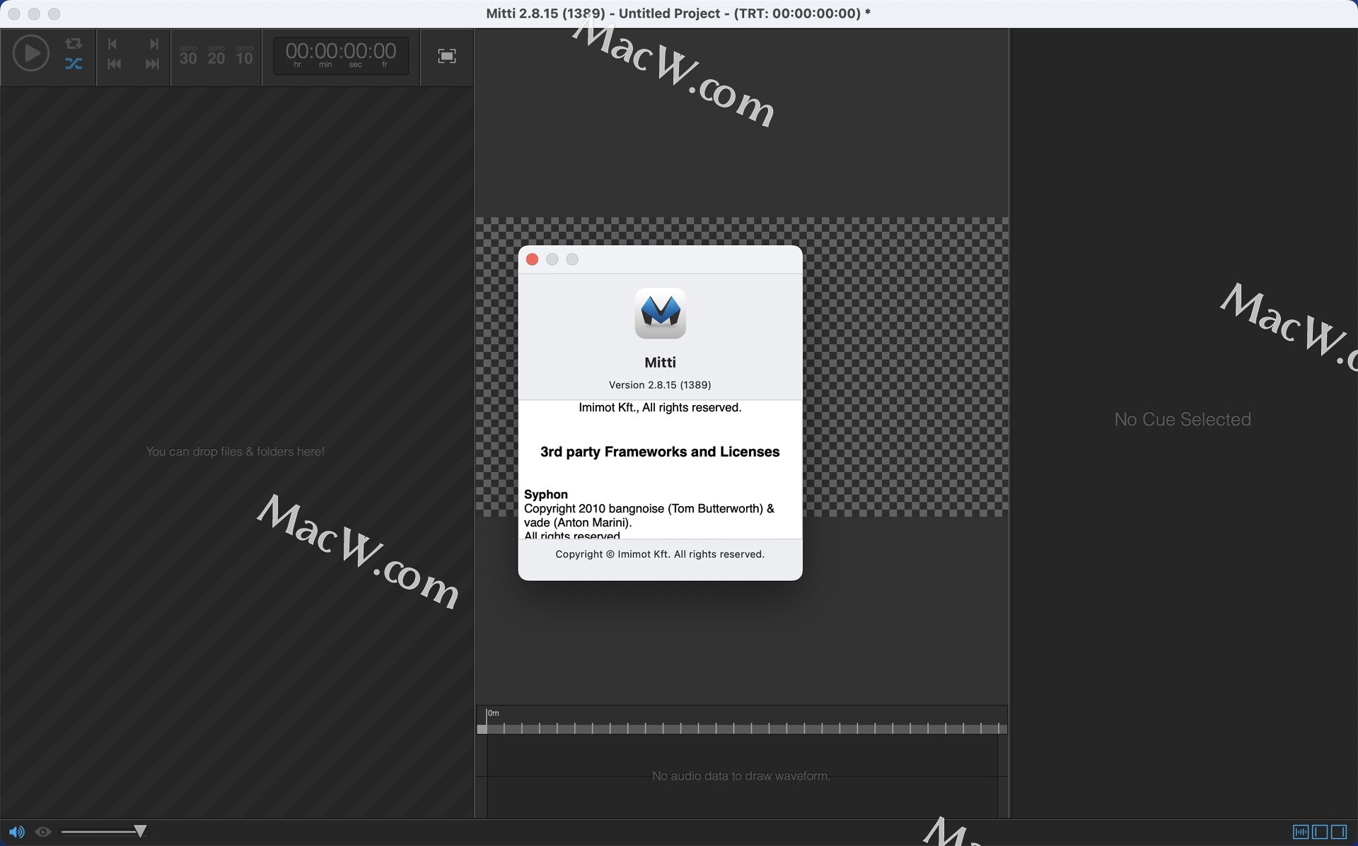Mitti 提供了一个用户友好的界面,具有强大的功能,如时间线编辑、实时预览和灵活的播放选项。它支持多种视频格式和分辨率,可以轻松集成到您的工作流程中。此外,Mitti 提供高级功能,如 DMX 照明控制、OSC 支持和 MIDI 映射以增强性能控制。测试环境:MacOS 15.0
