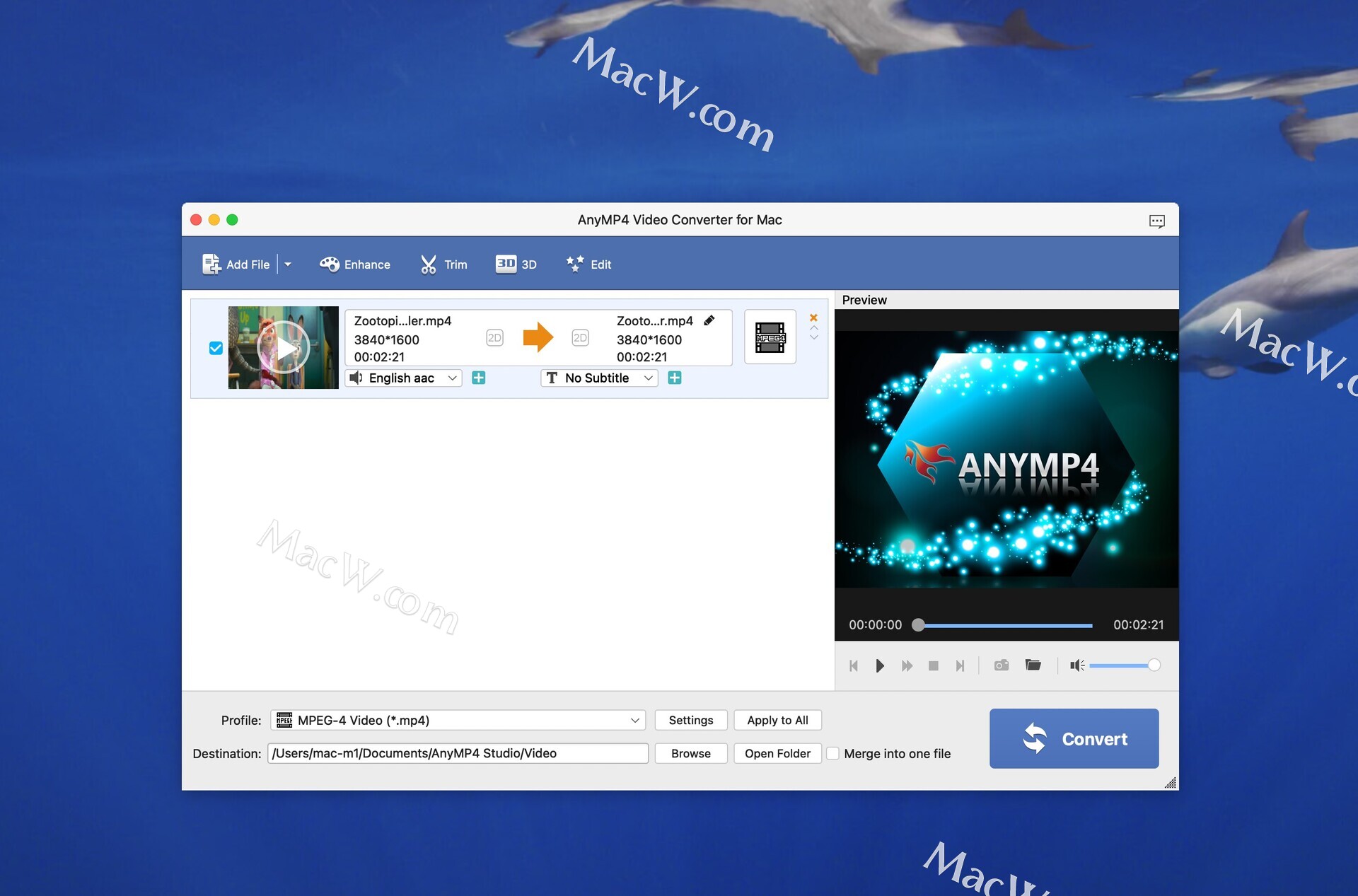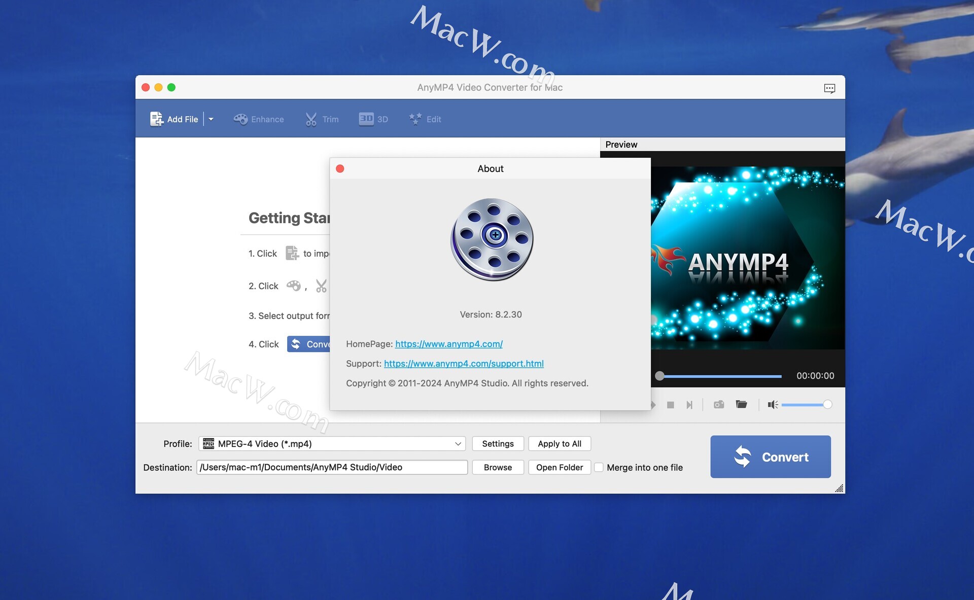 AnyMP4 Video Converter for Mac是一款专为Mac平台设计的多功能视频转换软件。它支持多种视频和音频格式,包括MP4、AVI、MOV、WMV、FLV、MKV等,以及多种音频格式如MP3、AAC、M4A等。此外,该软件还具备强大的编辑功能,如修剪、裁剪、合并视频,以及添加水印和字幕。其直观的界面设计使用户可以轻松浏览和使用该软件。AnyMP4 Video Converter for Mac具有批处理功能,允许用户同时转换多个视频,从而节省时间和精力。在转换过程中,该软件还能保持视频文件的原始质量,确保用户获得最佳输出。无论是将手机或平板电脑上的视频转换为其他格式,还是将视频导出到视频编辑软件中进行进一步处理,AnyMP4 Video Converter for Mac都是一个可靠且全面的解决方案。测试环境:MacOS 14.2