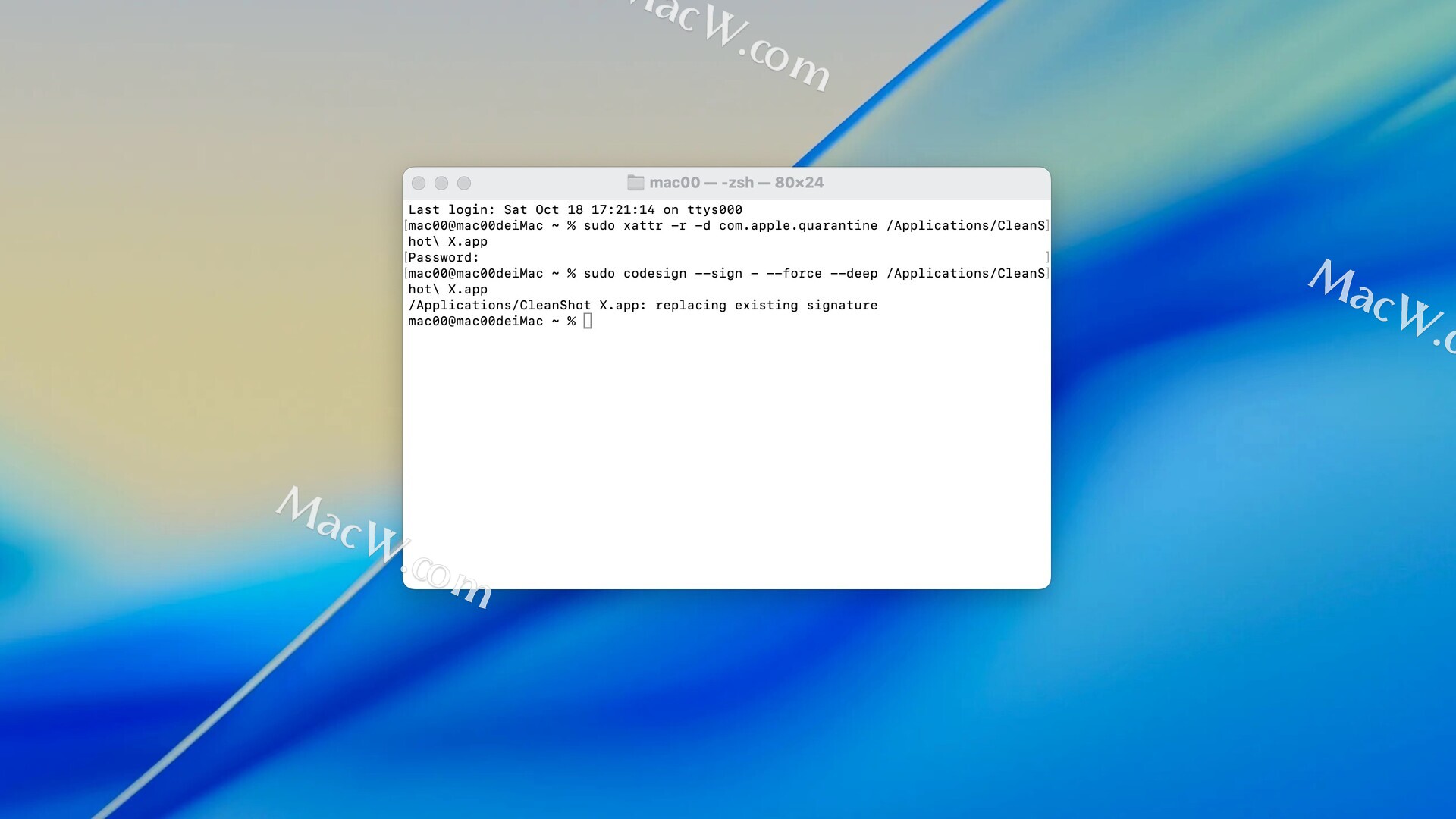 sudo codesign --sign - --force --deep /Applications/CleanShot\ X.app