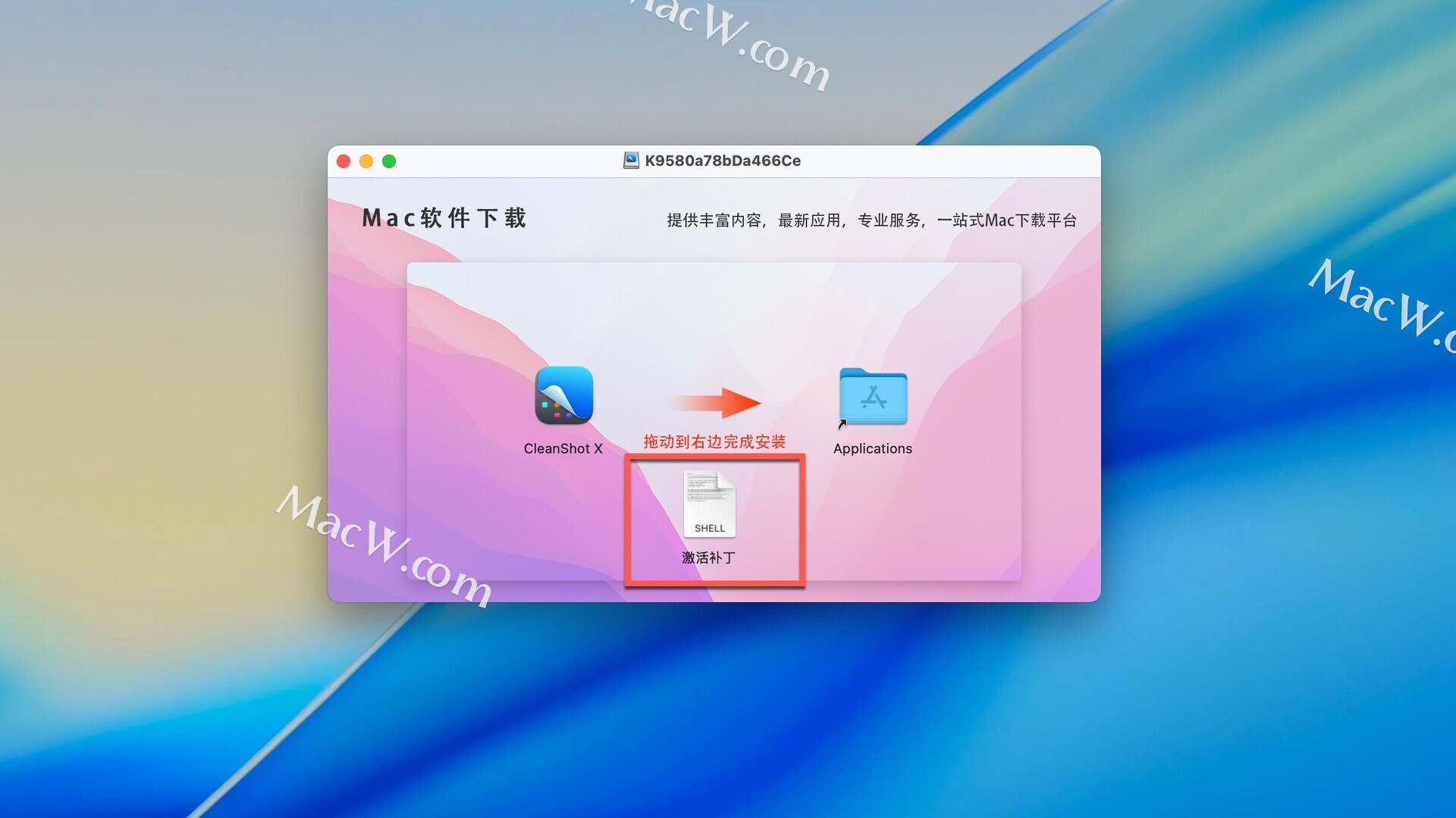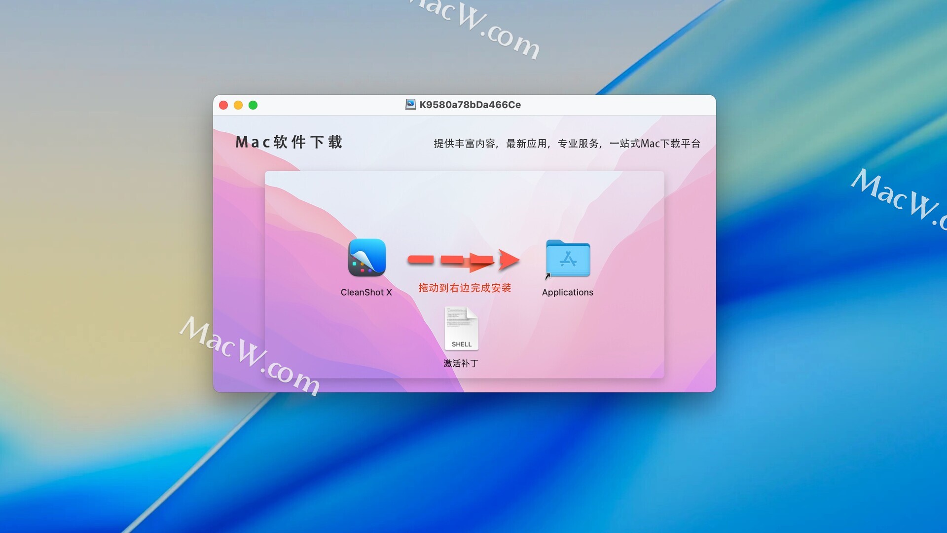 CleanShot X下载完成后打开,拖动左侧的软件到右侧应用程序中即可