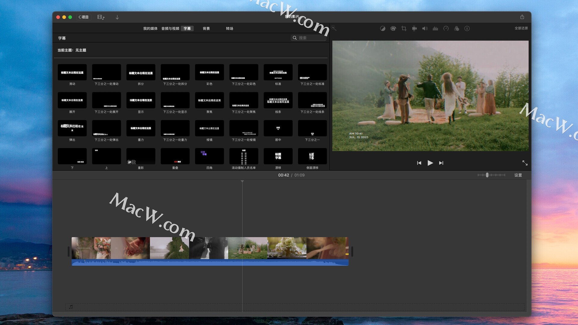 你可以从众多风格中进行选择,为你的影片增加精美的动态字幕和演职人员表。