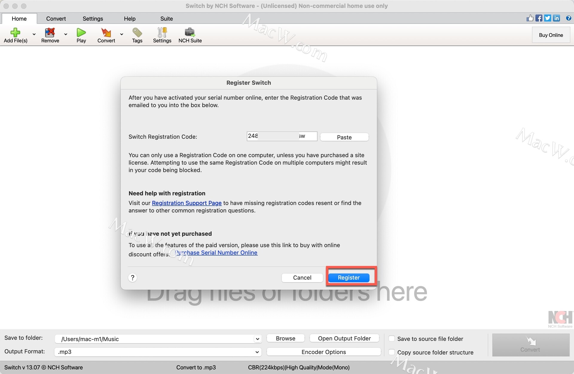 将Switch注册码复制到对应位置(点击paste即可粘贴注册码)然后点击registear。