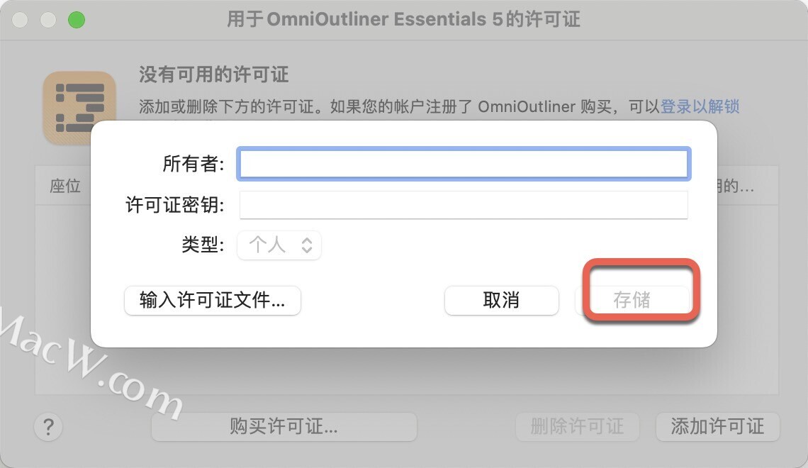 将OmniOutliner 5 序列号双击复制到注册页面中点击存储【save】