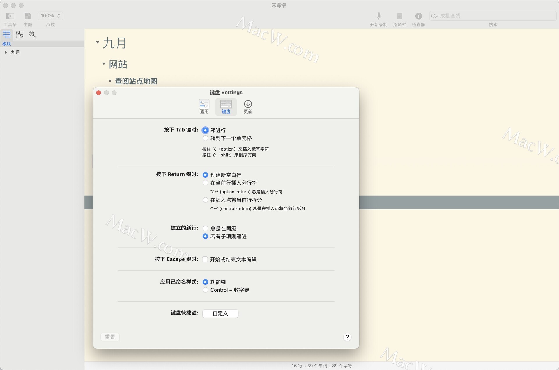 自定义OmniOutliner全面使用的快捷方式。用于其他应用程序的快捷方式?在OmniOutliner 5 Pro中进行设置。
