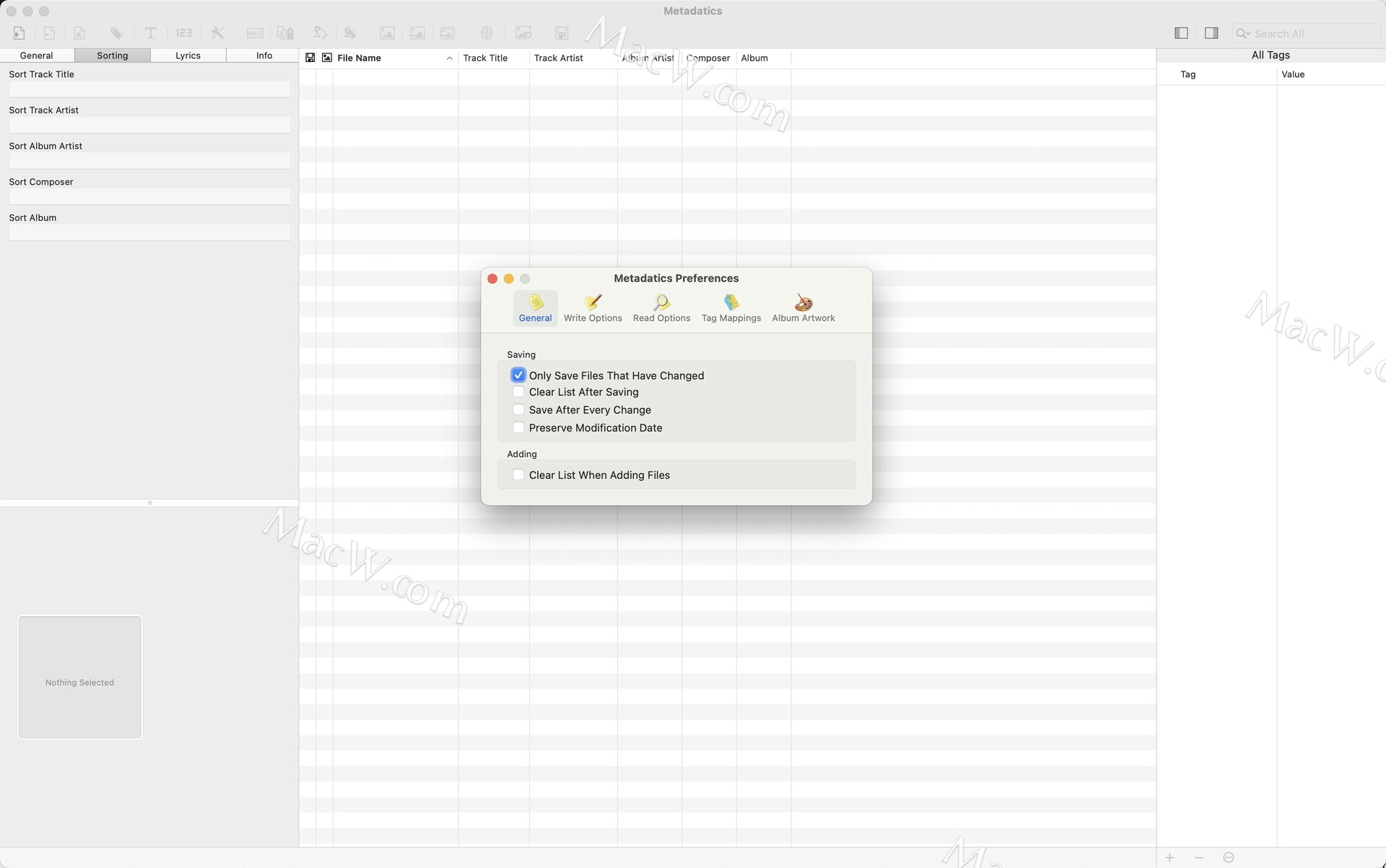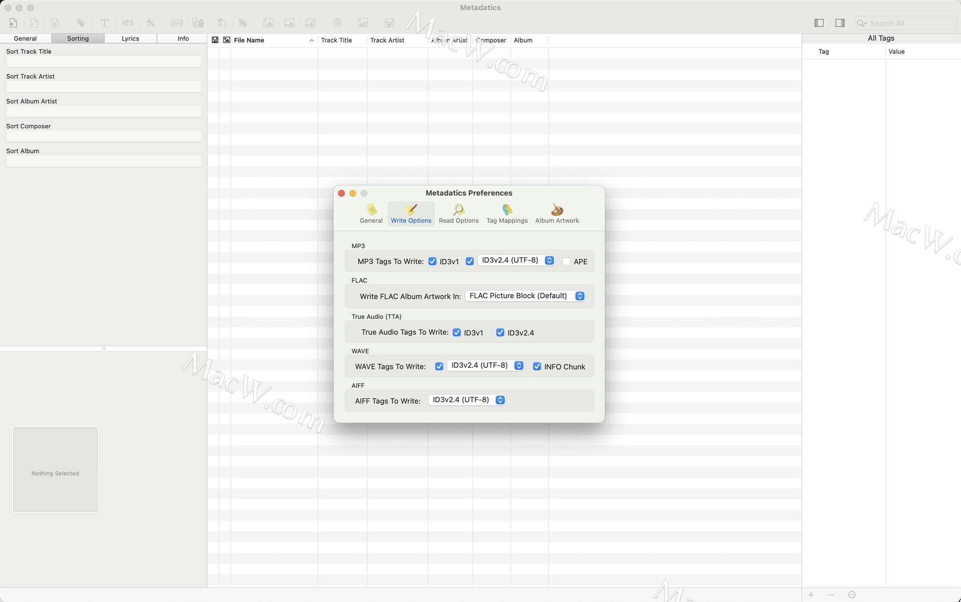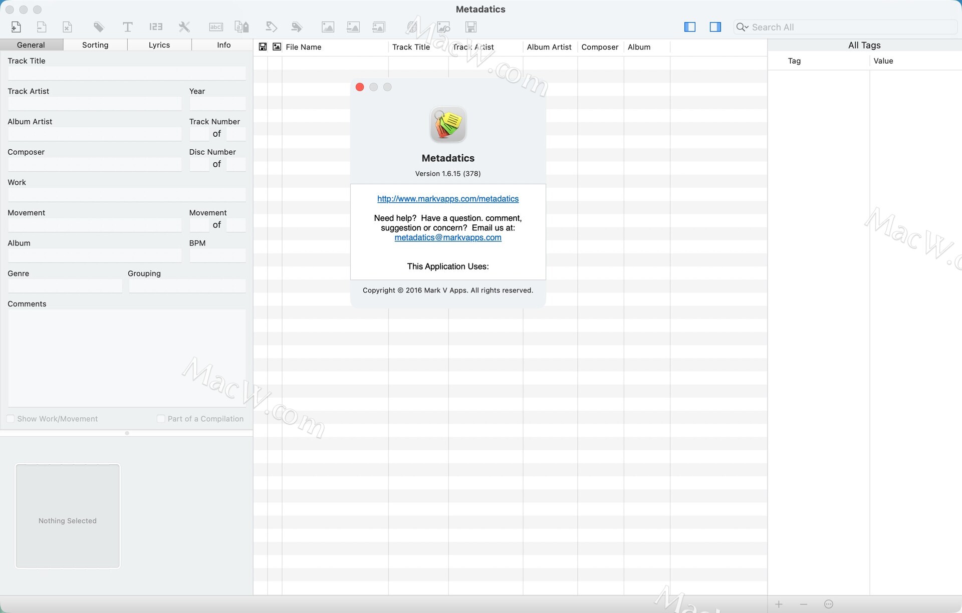 Metadatics是功能强大的音频元数据编辑器,具有许多功能。它支持大多数音频文件类型的批量编辑,包括MP3,M4A,AIFF,WAV,FLAC,APE,OGG,WMA等。