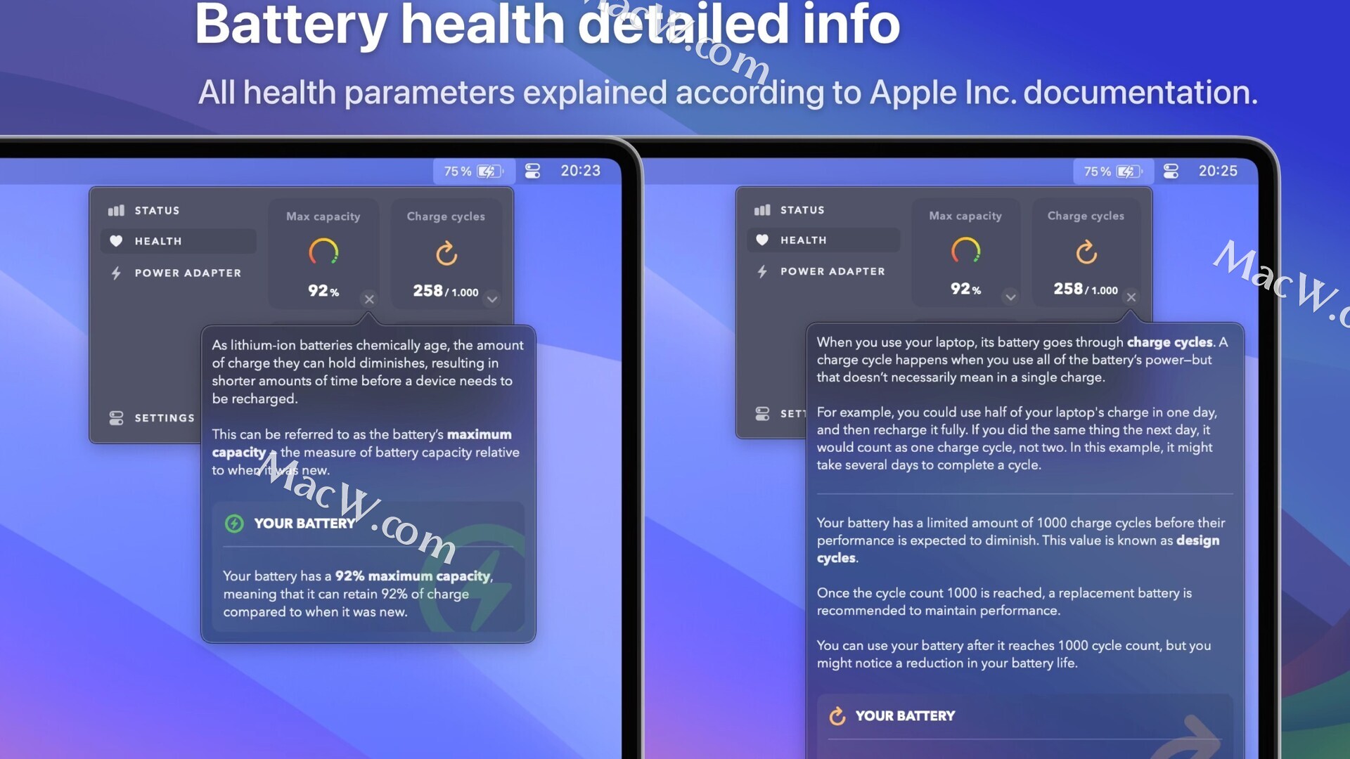 您的电池健康参数(充电周期、最大值、容量等),非常容易解释